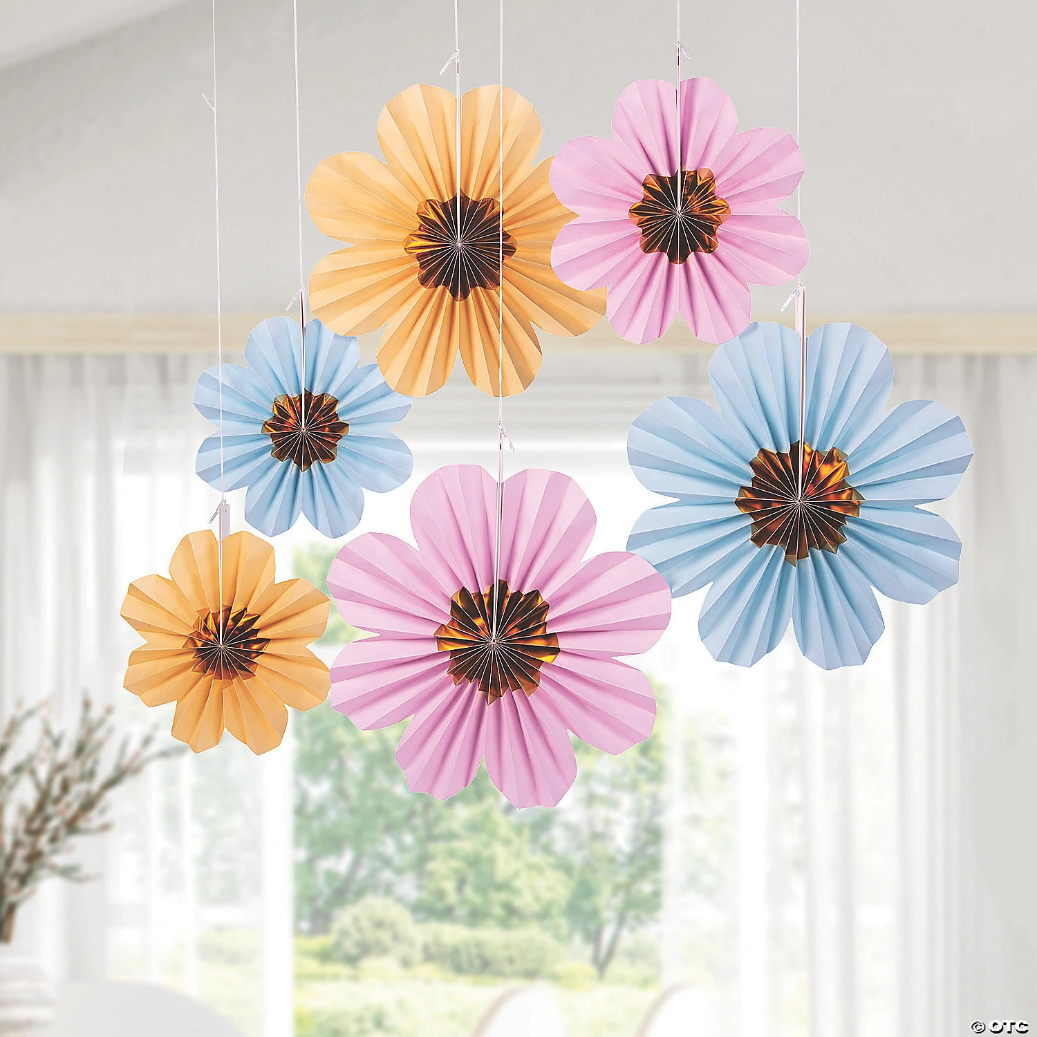 • PERFECT FOR ANY EVENT: From Easter parties to school spring celebrations, these floral hanging fans make the perfect party decorations. They’re versatile and fun!• QUALITY DECORATIONS: Made from quality materials, these daisy hanging fans only require minimal assembly before they’re ready for display.• VIBRANT COLORS: Choose the hanging fan color that best matches your celebration’s theme for pops of color that will impress guests.• BUDGET-FRIENDLY DECORATIONS: You won’t find these hanging fans at this low price anywhere else! Why spend more on party decorations when you don’t have to?Product Description:Looking for bright and festive spring party decorations? These pastel daisies add a pop of color to any party space! Overlap them in one area or spread them throughout different areas of your party. They’re lovely additions to Easter party decor and garden party themes.Size: Includes 3 each 10” and 14” diam.Shape: RoundQuantity: 6Material: Tissue PaperSimple assembly required.