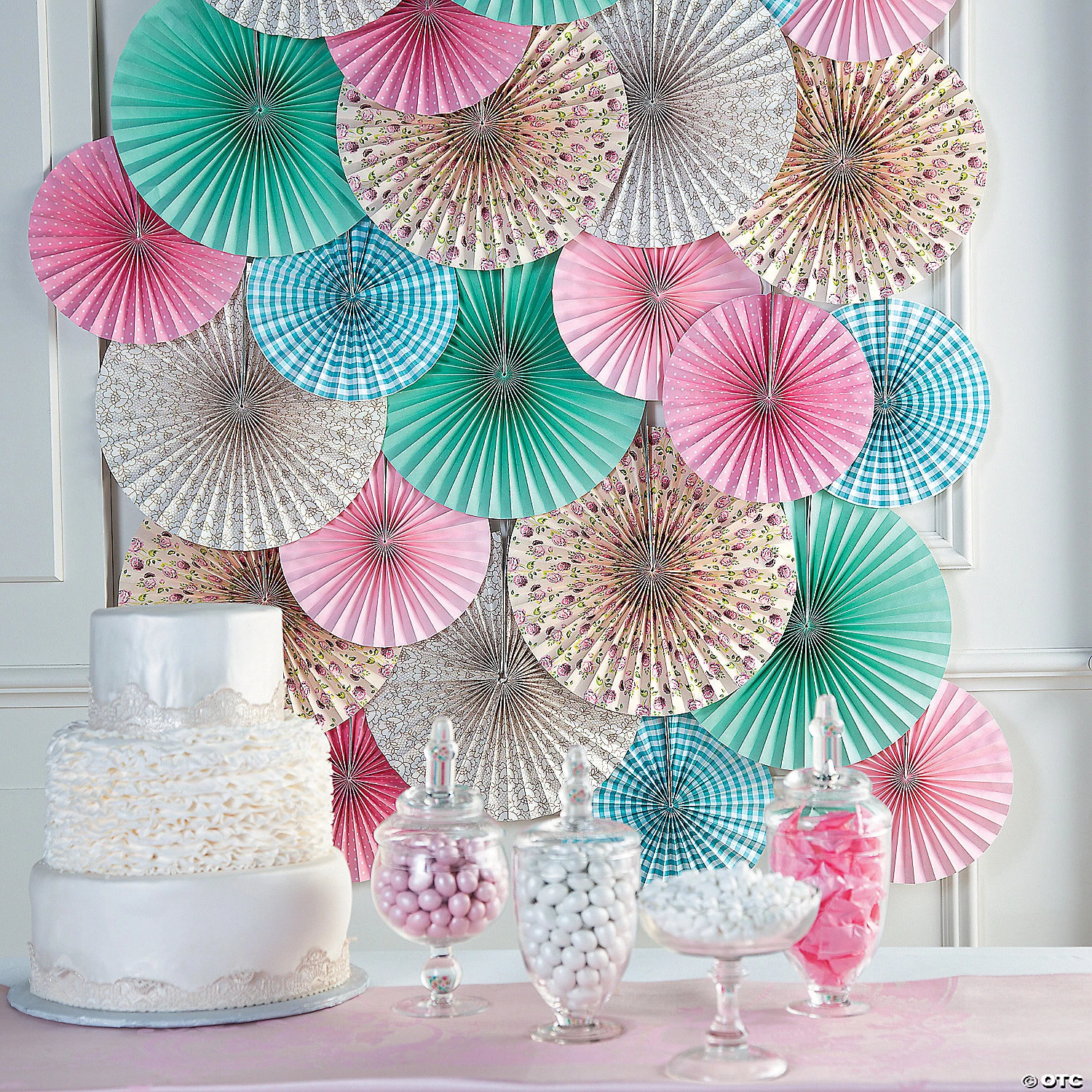 • PERFECT FOR ANY EVENT: From vintage weddings to retro school dances, these charming hanging fans make the perfect party decorations. They’re versatile and charming!• VIBRANT COLORS: This set of hanging fans will enhance your celebration’s theme and give you pops of color that will impress guests.• QUALITY DECORATIONS: Made from quality materials, these vintage hanging fans only require minimal assembly before they’re ready for display.• YOUR PARTY SUPPLY HEADQUARTERS: Shop Oriental Trading for unbeatable selection and guaranteed lowest prices. From decorations to tableware to party favors and more, we can help you party for less!Product Description:The perfect finishing touch on a vintage wedding theme, these stunning ceiling decorations add a trendy yet old-fashioned charm to your celebration. They’re a wonderful way to create a chic, glamorous atmosphere, and they wave in the breeze as guests begin to waltz beneath them. Use them to create a gorgeous retro atmosphere that’s picture-perfect and made for memories. Printed on one side.Size: Three each of: 10″ and 14″.Shape: Round.Quantity: 6Material: Tissue Paper.Simple assembly required.