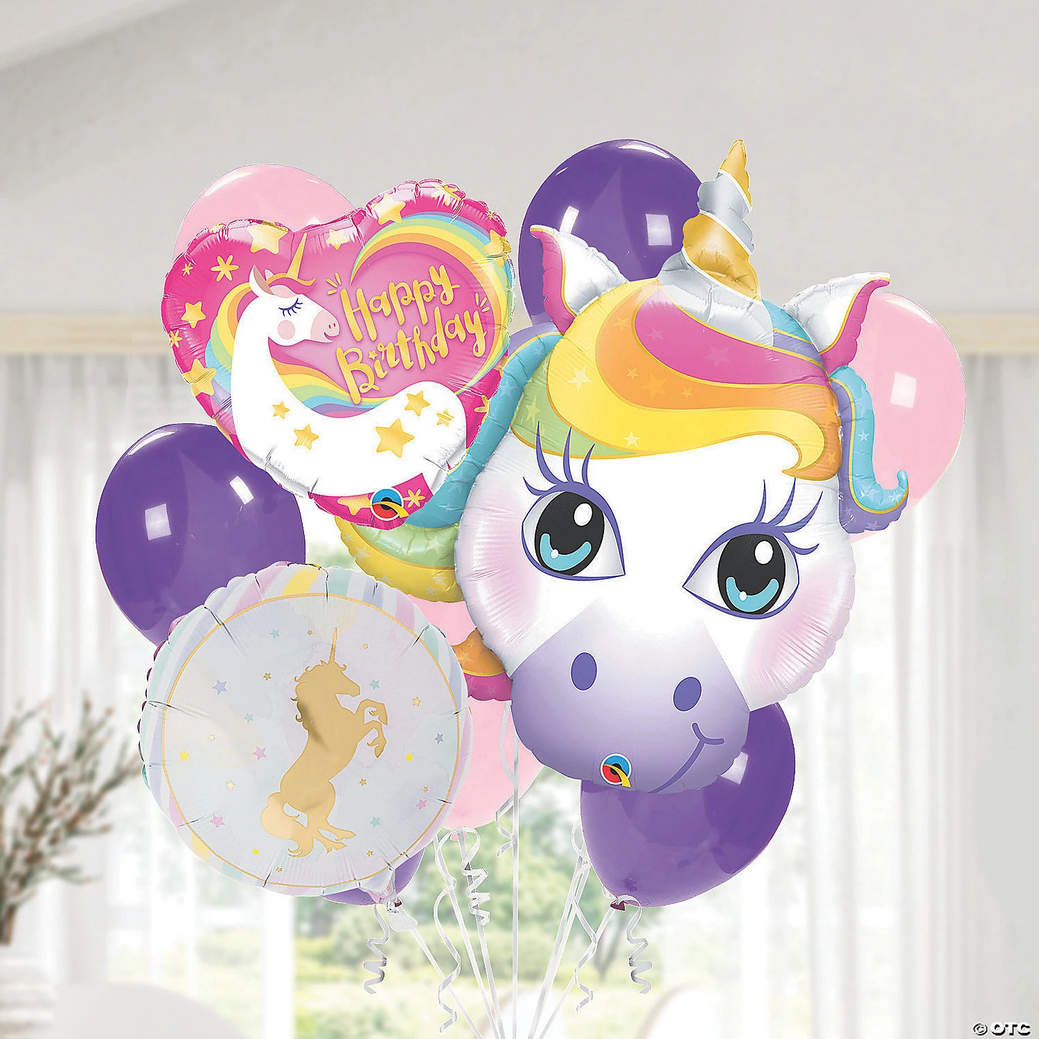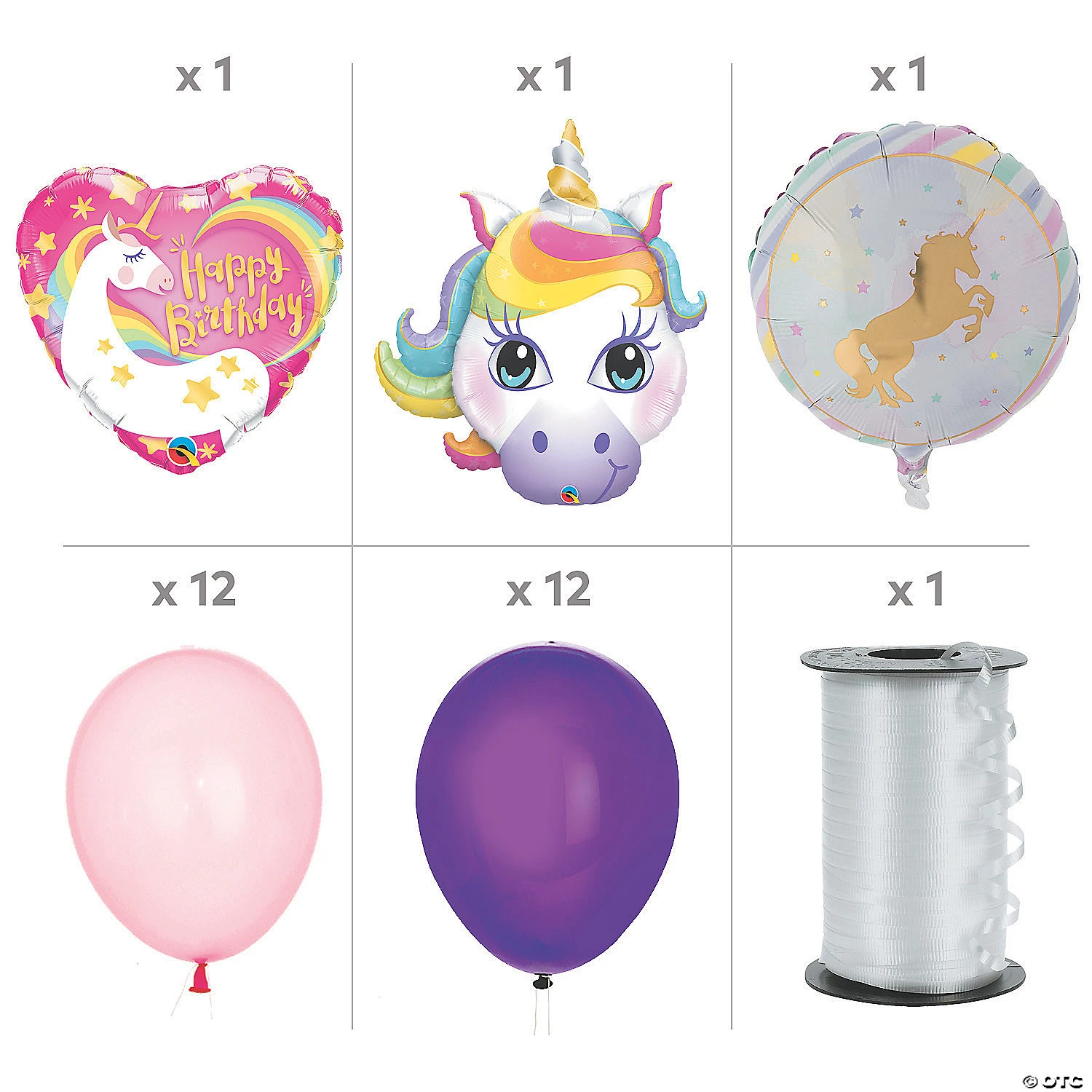 • FUN UNICORN DECORATIONS: When it comes to unicorn birthday parties, you can never have too many enchanting designs! This balloon bouquet is chock full of playful unicorns and beautiful rainbows to make your unicorn party extra fun.• GREAT FOR BIRTHDAY PARTIES AND MORE: From birthday parties to baby showers to other special occasions, your unicorn themed party will be complete with the help of these unicorn decorations!• BUDGET-FRIENDLY UNICORN DÉCOR: This affordable kit proves that you don’t need to spend an arm and a leg to get great décor!• VIBRANT COLORS: Gorgeous pink, purple and golden hues make this bouquet especially captivating! Pair with other unicorn themed party supplies on this site for an event that won’t soon be forgotten. • PARTY SUPPLY HEADQUARTERS: Oriental Trading has everything you need for unicorn themed birthday parties as well as all of life’s other occasions! Product Description:Unicorns are special – just like the birthday girl or boy! Help your special unicorn celebrate their birthday with this colorful and fun balloon bouquet featuring unicorn images they’ll love. With more than twenty balloons included in this bouquet, the finished product is one that will surprise and delight the birthday person. Give the bouquet as a birthday surprise or use it as decoration at a unicorn birthday party. Includes:• 12 Light Pink Latex Balloons (11″)• 12 Quartz Purple Latex Balloons (11″)• 1 Birthday Magical Unicorn Mylar Balloon (18″)• 1 Magical Unicorn Mylar Balloon (38″)• 1 Sparkle Unicorn Mylar Balloon (18″)• 1 Polypropylene White Curling Ribbon (3/16″ x 500 yds.)Size: 11 inches to 38 inchesQuantity: 28Assortment may vary. Simple assembly required.
