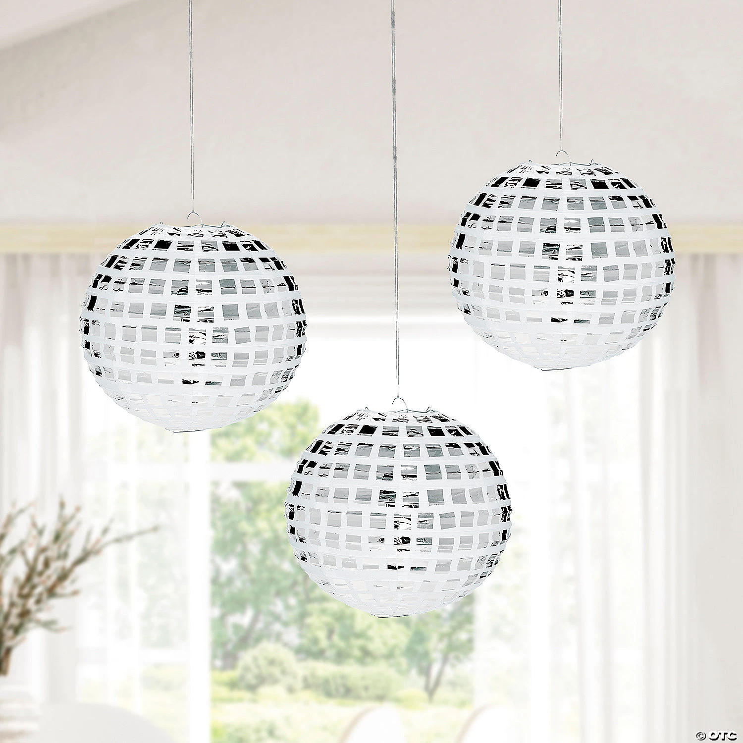 • EASILY ASSEMBLE AND REUSE TIME AFTER TIME: These paper “disco balls” are easy to assemble and hang. Simply fold them flat after use for easy storage until your next celebration!• QUALITY DECORATIONS: These sturdy, versatile lanterns can be used time and time again to celebrate at your famous retro parties! Mix and match different colors to fit any party theme.• BUDGET-FRIENDLY DIY DÉCOR: Not just for parties, these 1970s vintage-style lanterns make beautiful, affordable additions to your home décor, classroom decorations, dorm décor and more.• VIBRANT COLORS: These lanterns offer a rich, vibrant color that perfectly coordinates with your school colors, wedding color scheme, or other event theme. Product Description:It’s a disco inferno! Ok, not really, but these disco ball paper lanterns are sure to add a bit of glitz and glamour to your 70s party! They’re perfect for adding retro pizazz to downstairs chill areas and dorm rooms, too. Give any space vivid vintage style with these nifty hanging paper lanterns, and check out our huge array of other paper lanterns elsewhere on this site!Size: 12″Shape: RoundQuantity: 3Material: PaperIncludes wire hangers. Simple assembly required. © OTC