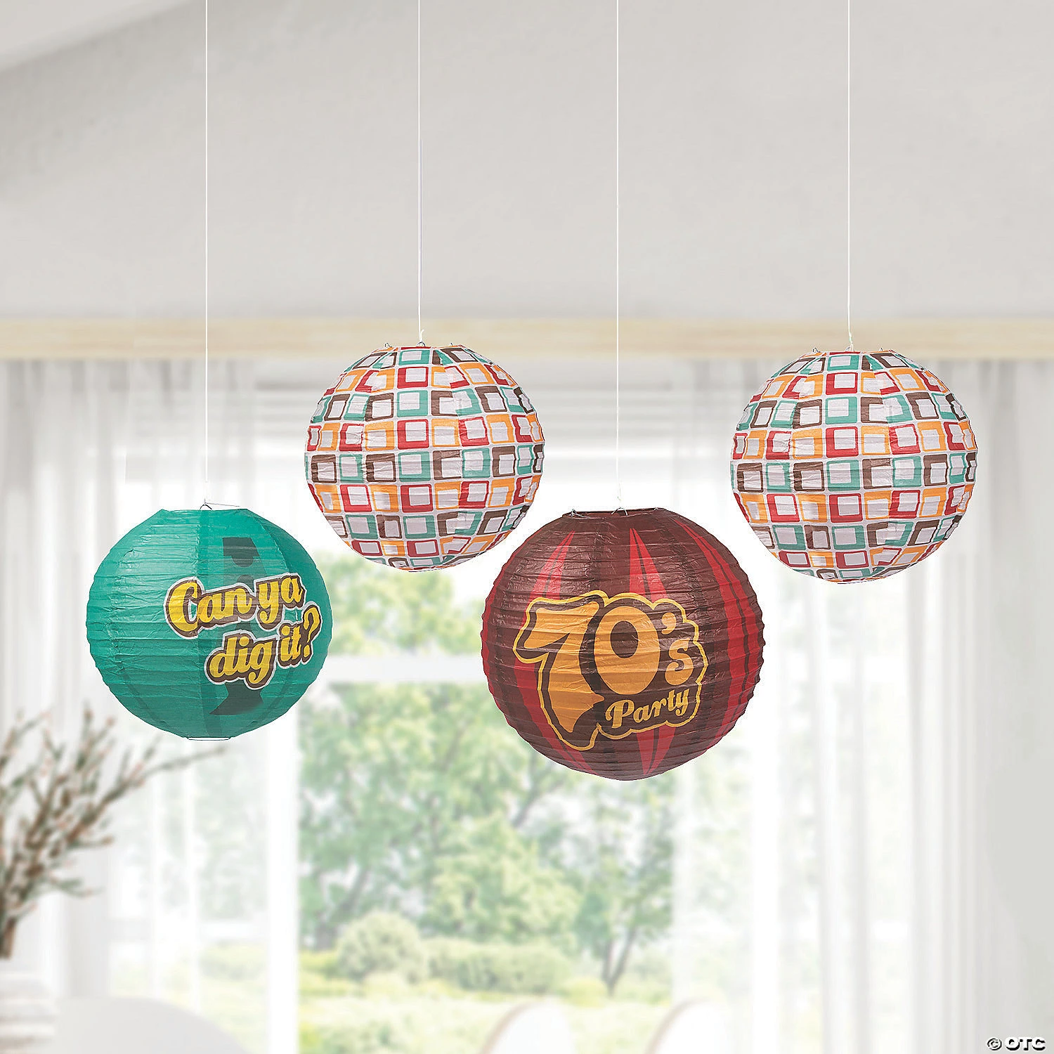 • BUDGET-FRIENDLY DIY DÉCOR: Not just for parties, these vintage-style lanterns make quirky, affordable additions to your home décor, classroom decorations, dorm décor and more.• MAKE THEM GLOW: Hang these lanterns as they are or place battery-operated tea lights inside (sold separately) to add a soft, elegant glow to your vintage event and really awe your party guests!• VIBRANT COLORS: These lanterns offer a rich, vibrant color that perfectly coordinates with your retro prom, themed wedding color scheme, or other event theme. • PARTY SUPERSTORE: Shop Oriental Trading for all of your retro party supply needs, from decorations to tableware to party favors and more.Product Description:Travel back to a time when everything was as groovy as these paper lanterns! A great addition to retro party decorations, these lanterns feature a colorful mod design that will have guests doing the hustle. Suspend them throughout your party space or cluster each one together for a far-out photo backdrop. Lanterns dressed in 70s style are sure to add some funk to your festivities!Size: 12″Shape: Round.Quantity: 6Material: Paper.Includes wire hangers. Simple assembly required. © OTC’70s Party Hanging Paper Lanterns