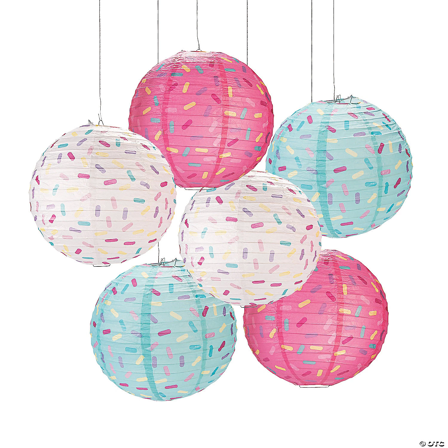 • QUALITY DECORATIONS: These sturdy, versatile donut party lanterns can be used time and time again to celebrate any occasion in your life! Mix and match different colors to fit your party’s color scheme.• BUDGET-FRIENDLY DIY DÉCOR: Not just for parties, these donut decorations make beautiful, affordable additions to your office break room décor, classroom decorations, dorm décor and more.• EASILY ASSEMBLE AND REUSE TIME AFTER TIME: These paper lanterns are easy to assemble and hang. Simply fold them flat after use for easy storage until your next celebration!• VIBRANT COLORS: These lanterns offer a rich, vibrant color that perfectly coordinates with any other decorations in your event.Product Description:Dipped in bright colors and covered in sprinkles, these donut party decorations are sweet additions to your fun party supplies. Featuring 3 different styles, this set of paper lanterns is easy-to-hang and super-cute. They’re great for office parties, birthday parties, and your more quirky wedding reception themes! To stick with this tasty theme, find our entire collection of Donut Party decorations on our website. Size: 12″Shape: Round.Quantity: 6Material: Paper.Includes wire hangers. Simple assembly required. © OTCDonut Party Hanging Paper Lantern Instructions