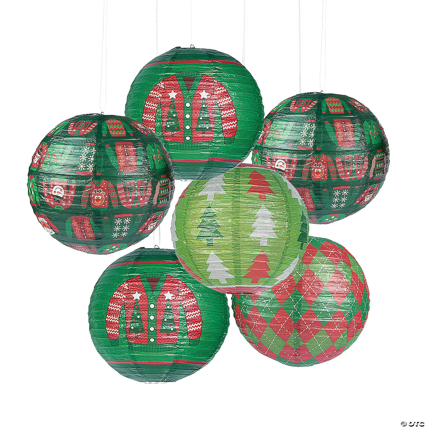 • VIBRANT COLORS: These lanterns offer a rich, vibrant color that perfectly coordinates with your holiday party theme.• EASILY ASSEMBLE AND REUSE TIME AFTER TIME: These paper lanterns are easy to assemble and hang. Simply fold them flat after use for easy storage until your next ugly Christmas sweater celebration!• QUALITY DECORATIONS: These sturdy, versatile Christmas lanterns can be used time and time again to celebrate during the holiday season! Mix and match different colors to fit your party theme.• PARTY SUPERSTORE: Shop Oriental Trading for all of your party supply needs, from decorations to tableware to party favors and more.Product Description: These festive Christmas party paper lanterns are must-have decorations for your ugly sweater contest! Beautifully unstylish, these whimsical Christmas decorations look adorable hanging from the ceiling, porch overhang, and light fixtures. Hang a cluster of these cute paper lanterns together for the ultimate DIY photo booth backdrop at your holiday party and pose away in your ugliest woolen top!Size: 12″Shape: Round.Quantity: 6Material: Paper.Includes wire hangers.Simple assembly required.© OTC Ugly Sweater Hanging Paper Lanterns
