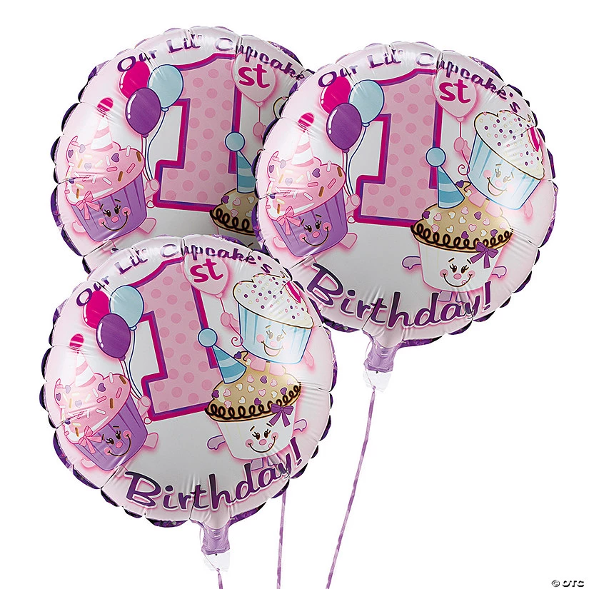 Make a balloon bouquet for your little one’s 1st birthday party with help from this 1st Birthday Cupcake Balloon Set. A fun addition to your birthday party supplies, this set includes 18″ mylar balloons. Use these as table centerpieces or let them fly during your celebration. (3 pcs. per set). © OTC