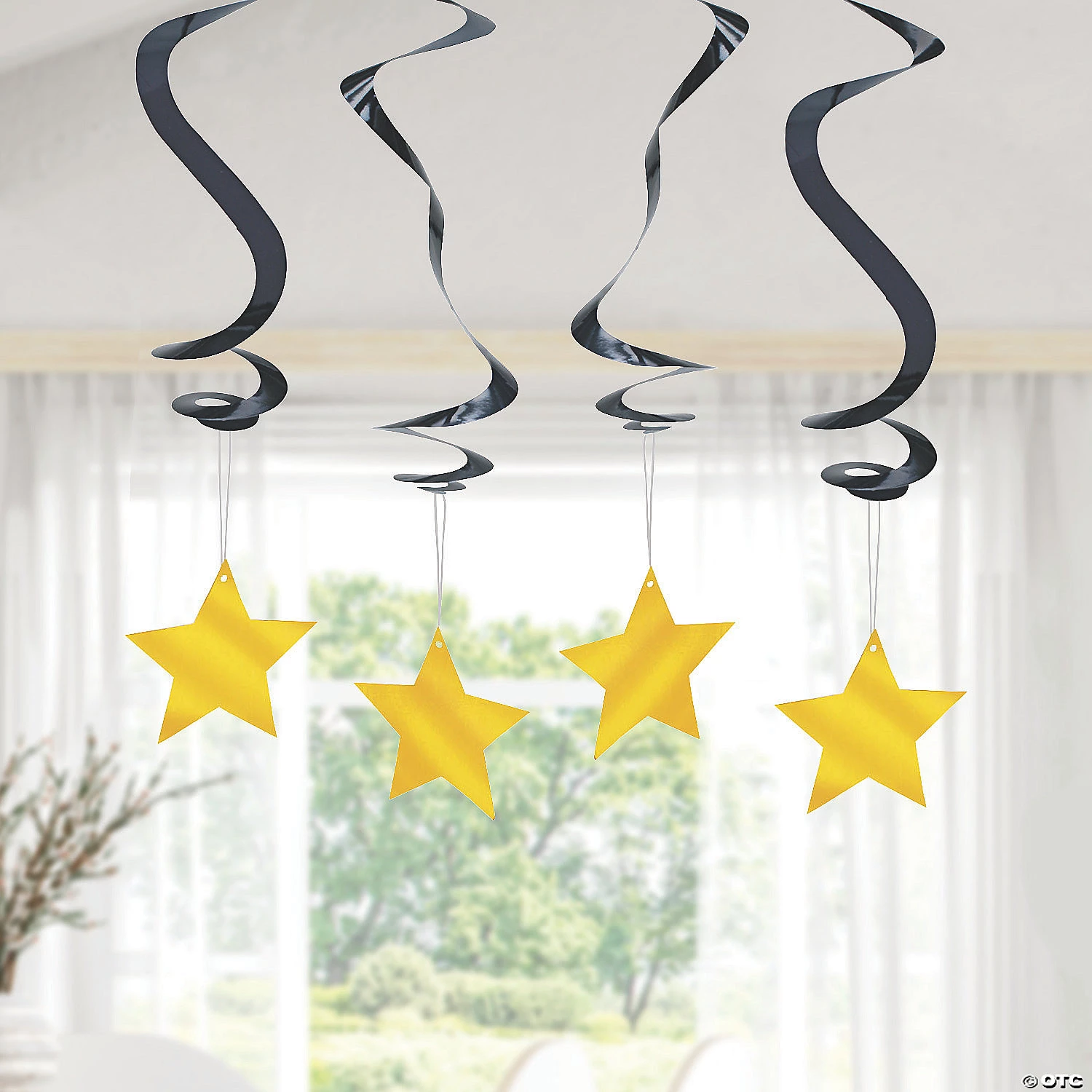 • BUDGET-FRIENDLY DECORATIONS: Add lots of character to the look of party decorations without spending lots of money. These hanging swirls give you more bang for your buck.• CREATIVE USES: Hanging swirls aren’t only for decorations! Keep them on hand for when inspiration strikes for art projects and science experiments on the study of swirl patterns. • PERFECT FOR ANY EVENT: From birthday parties to school dances, hanging swirls make the perfect party decorations. These hanging swirls are versatile and fun!• VIBRANT COLORS: The perfect size for any occasion, these 20” hanging swirls add another dimension to your party decorations. Take advantage of unused ceiling space to add more color to your party.Product Description:Our Dangling Gold Star Swirls are stellar additions to your party supplies. Unique accessories that complement any party dĂ©cor, these metallic and cardboard swirls are great for graduation celebrations, proms, birthday parties, theater cast parties and more. Hang them around the celebration room for an out-of-this-world look! Each with a metallic swirl and 5″ gold cardboard star. Hangs approx. 20″. © OTCSize: Hangs approx. 20″ Quantity: 12Material: Paper and cardstock.© OTC