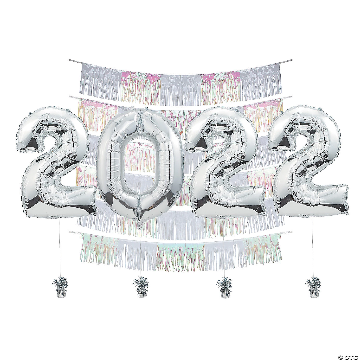 The best parties have fun photo booths so guests can snap some photos to remember the event. Give your guests a fun photo booth that will yield many fun photos with the help of this impressive backdrop kit. Featuring silver mylar balloons that spell out “2022” and a fringe garland backdrop, this kit is the perfect addition to New Year’s Eve or 2022 graduation celebrations. (23 pcs. per unit) Assortment may vary. Simple assembly required. © OTCIncludes:• 3 Silver “2” Shaped Mylar Number Balloons (34″)• 1 Silver “0” Shaped Number Mylar Balloon (34″)• 12 Foil Silver Metallic Balloon Weights (5 1/2″)• 1 Polypropylene Silver Curling Ribbon (3/16″ x 500 yds.)• 1 Foil White & Iridescent Fringe Garland Backdrop (6 pcs. per set. 61″ x 10″)