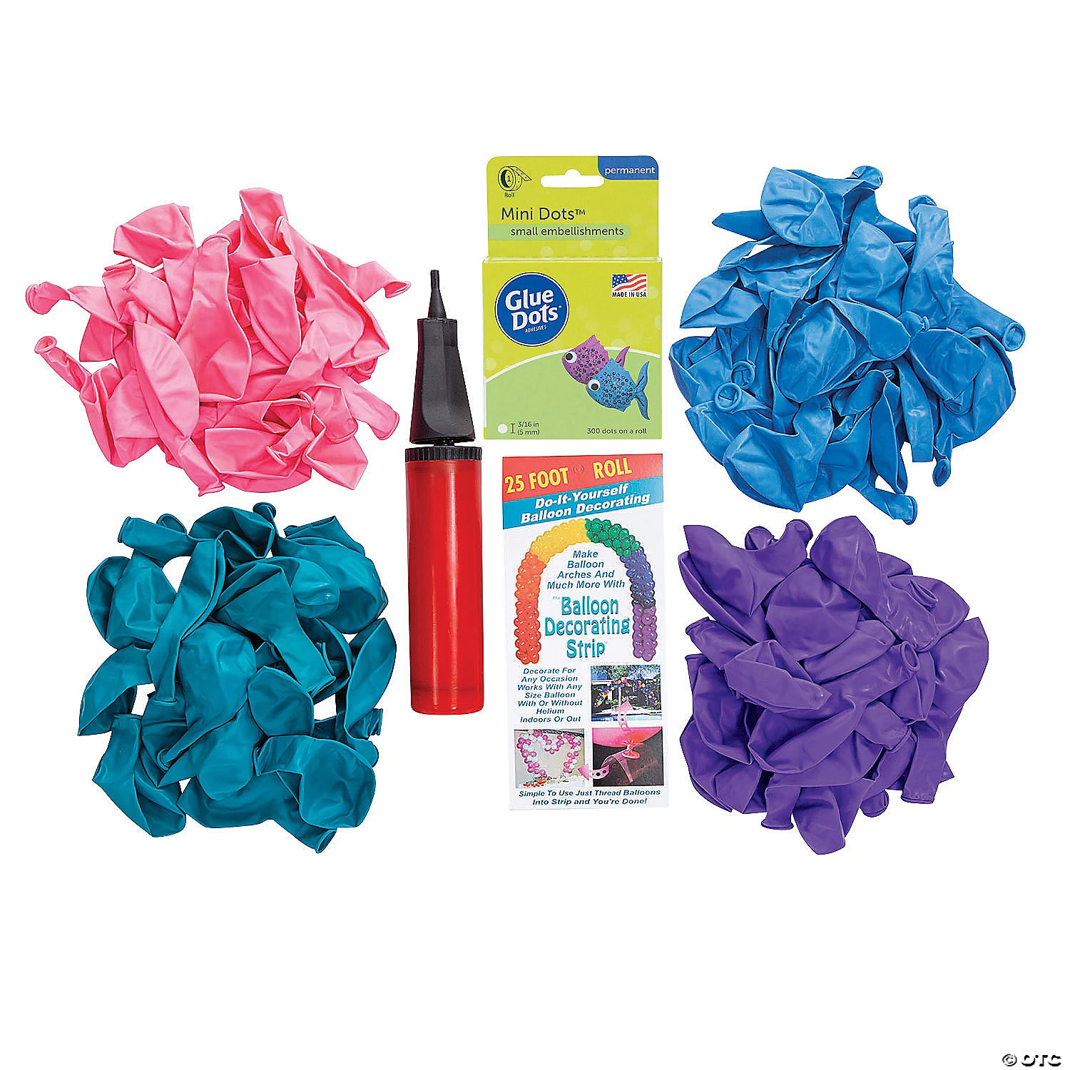• BUDGET-FRIENDLY DÉCOR: This affordable pastel balloon décor is a fun way to add festive style and party spirit to your celebration!• QUALITY DECORATIONS: If you’re planning a party, this balloon garland kit has you covered. They’re unique balloons that can easily be mixed and matched with other balloon options for your ideal color scheme or event theme.• PARTY SUPERSTORE: We are your one-stop party shop! Come to Oriental Trading for all of your party supply needs, from party decorations to tableware to party favors and more.• PERFECT FOR ANY EVENT: Balloon décor isn’t just for birthday parties! We have an amazing range of versatile balloon decorations to fulfil your every celebration need.Product Description:Set the stage for a baby shower, gender reveal party or bridal shower with this darling balloon garland decoration. The sweet, elegant pastel colors make it a picture-perfect party prop; just assemble it and it’s ready for its social media moment as a photo backdrop! Use it as an entrance statement piece, or as a dramatic décor piece on the dessert table.Size: 25 ft.Quantity: 98 pcs. per kitMaterial: Latex, PlasticIncludes:• 300 GlueDots® Mini Adhesive Dots. (3/16″) Safe and non-toxic. Conforms to ASTM D-4236. Acid free.• 24 Turquoise Latex Balloons (11″)• 24 Pink Latex Balloons (11″)• 24 Light Blue Latex Balloons (11″)• 24 Lavender Latex Balloons (11″)• 1 Balloon Decorating Strip: Plastic (25 ft.)• 1 Mini Modeling Balloon Air Pump© OTC