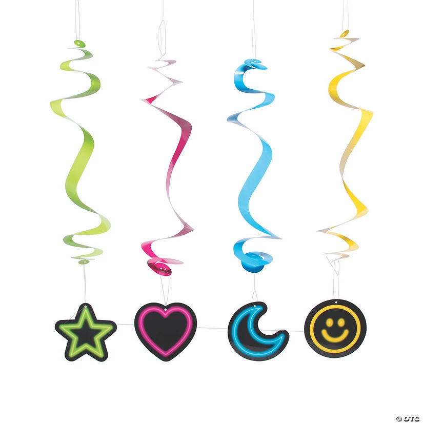 • BUDGET-FRIENDLY DECORATIONS: Add lots of character to the look of party decorations without spending lots of money. These hanging swirls give you more bang for your buck.• QUALITY DECORATIONS: You don’t have to pay a fortune for high quality party decorations! These hanging swirls are high quality and look great alongside any other party decorations.• PERFECT FOR ANY EVENT: From birthday parties to school dances, hanging swirls make the perfect party decorations. These hanging swirls are versatile and fun!• YOUR PARTY SUPPLY HEADQUARTERS: Shop Oriental Trading for unbeatable selection and guaranteed lowest prices. From decorations to tableware to party favors and more, we can help you party for less!Product Description:Gear up for a great glow celebration! To really take things from bland to grand, dress up your ceiling using fun accents like this. Perfect for party décor, these hanging swirls come in vivid shades and feature fun designs of smile faces, stars, moons and hearts. Just hang above the buffet table in a cluster or here, there, everywhere to get kiddos excited about your event! Assorted.Size: Hangs approx. 25” with 5″ shapes.Quantity: 12Material: Paper.© OTC