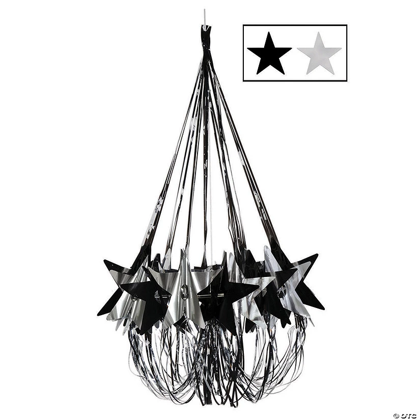 With this Black & Silver Star Chandelier Decoration, you’ll be able to dance under the stars! This chandelier makes a great addition to party decorations and supplies for a school dance like homecoming or prom. Get a bunch and leave them hanging about your party venue. Foil.
