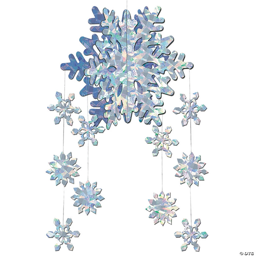 3-D Snowflake Mobile. Create a magical winter wonderland! Beautiful winter decoration reflects the light with a prismatic effect, perfect look for all your holiday festivities! Made of heavy paperboard, the mobile comes fully assembled, and pops open when you remove it from the packaging. 22″ long.Special Shipping Information: This item ships separately from other items in your order. This item cannot ship to a P.O. Box. This item may be subject to additional processing days.ITEM IS NOT ELIGIBLE FOR EXPEDITED SHIPPING