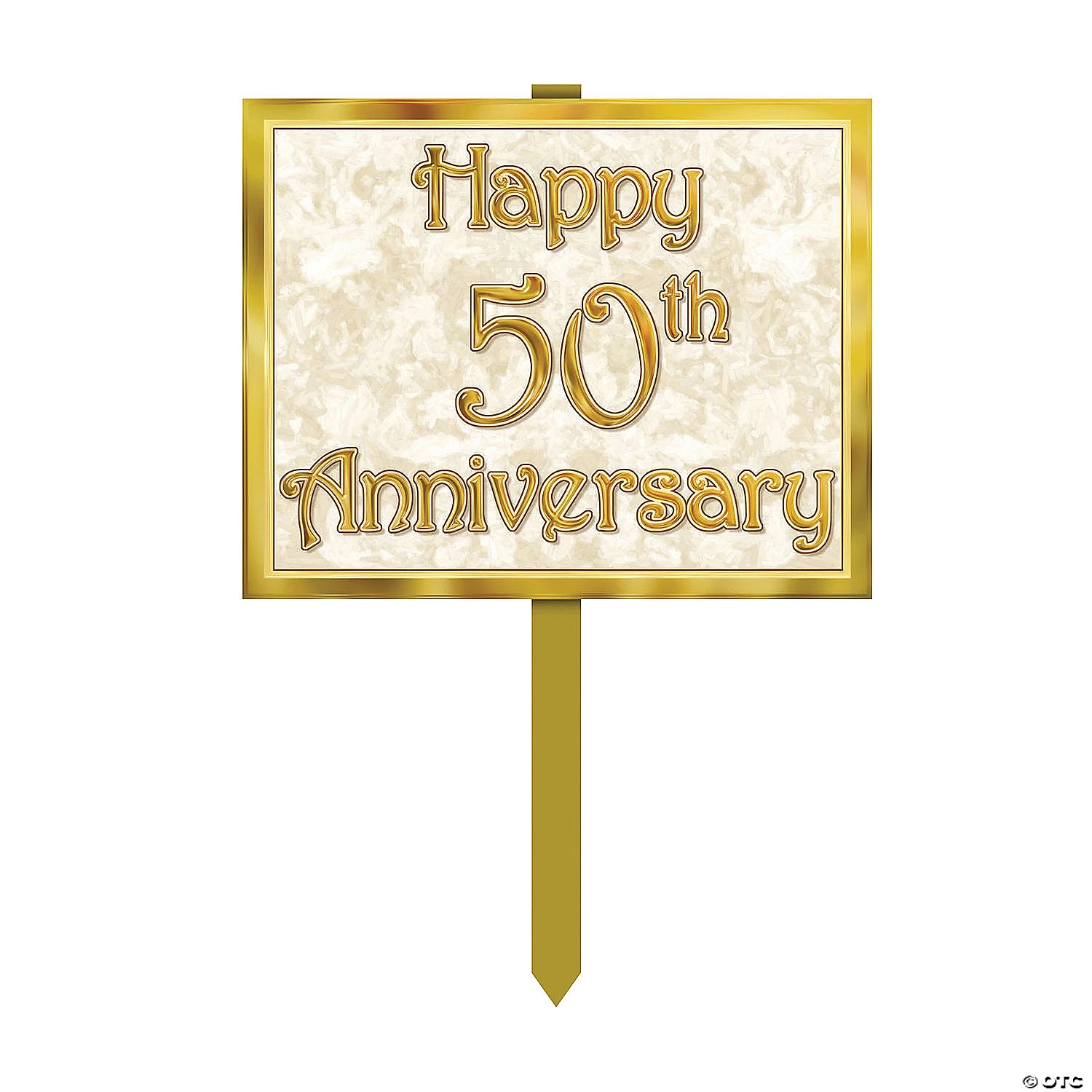 Let guests know they’ve arrived to your anniversary affair! With a shimmering gold appearance and text that boldly reads “Happy 50th Anniversary”, this yard sign is a must-have for party décor. Just stake it in the ground outside your celebration to get guests excited before they even set foot inside! Paper with wood stake. 12″ x 15″