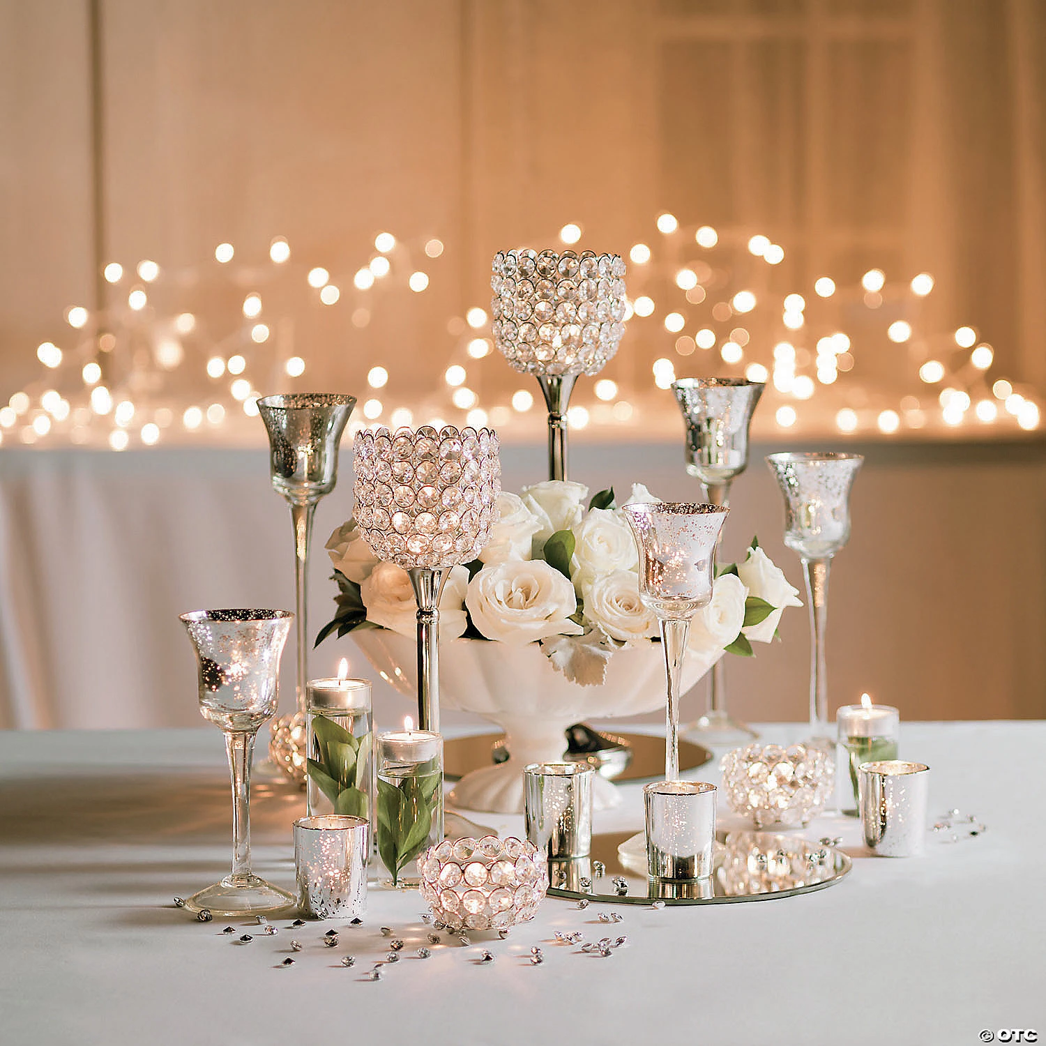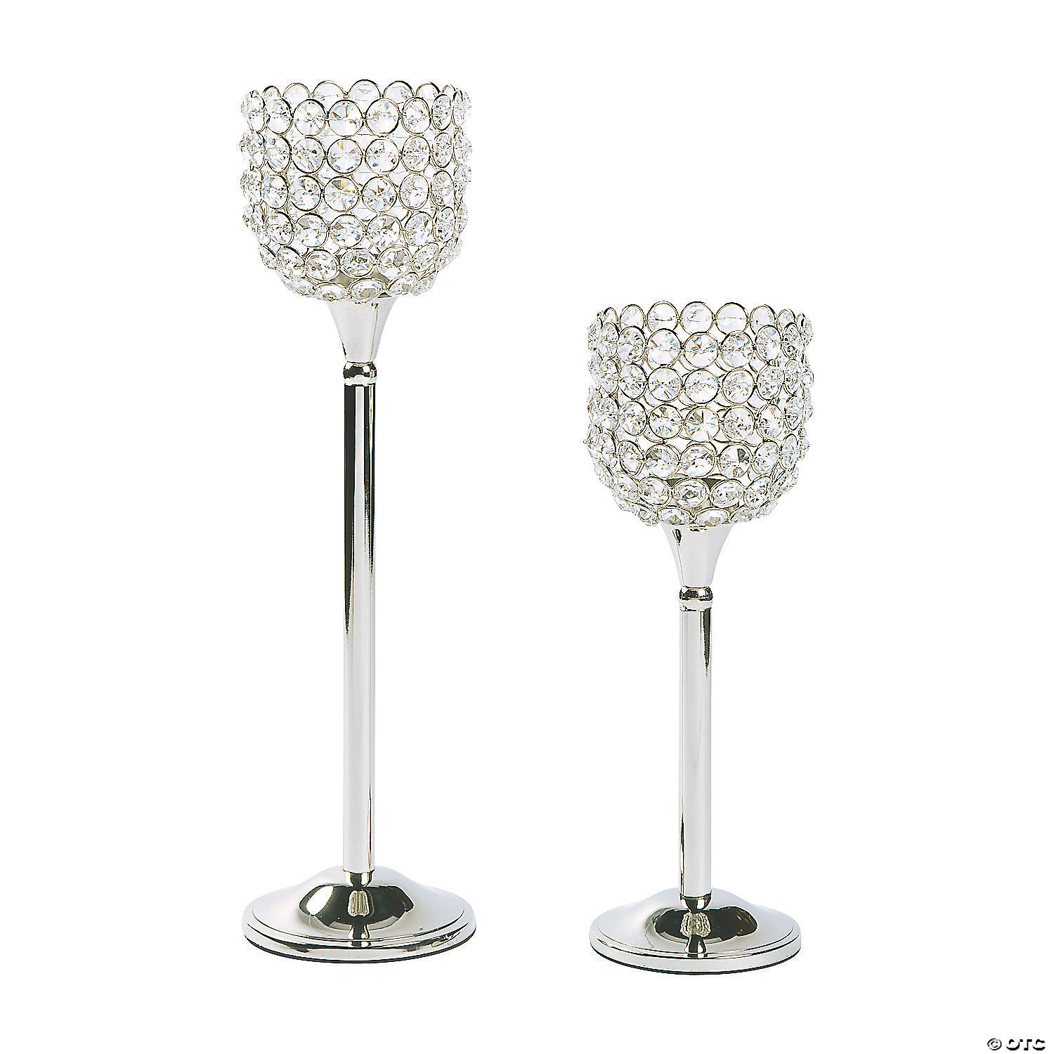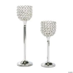 Guaranteed to add glamour and elegance to any table setting during your big day! A perfect addition to wedding decorations, this set features candle holders in two sizes, each featuring stunning clear crystal beads that really shimmer and shine. Pair ’em together and buy a set for each table if you’re hosting a contemporary chic reception. Best of all, they timelessly pair well with practically every color combination. Just add tea lights or candles for a wow-worthy effect! Metal. (2 pcs. per set) Small, 12″ x 4″ diam.; large, 16 1/2″ x 4″ diam.