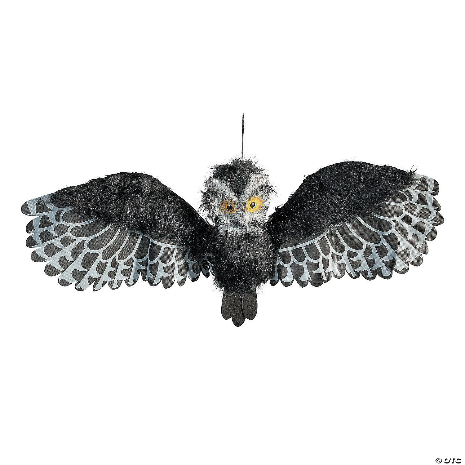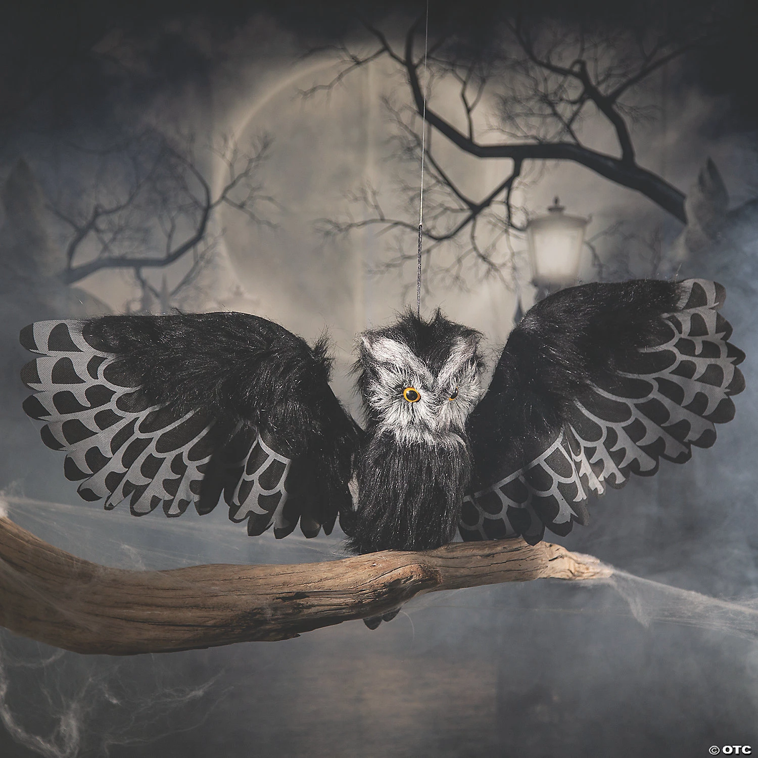This spooky Halloween decoration features an owl with a daunting wing span! Add it to your indoor Halloween decorations or add it to your porch as part of your outdoor Halloween decorations. Either way, this animated owl is sure to spook a few neighbors and friends! Features an attached fabric hanger. Includes on/off switch. Polyester and plastic. 40″ Requires 3 “AA” batteries, not included.