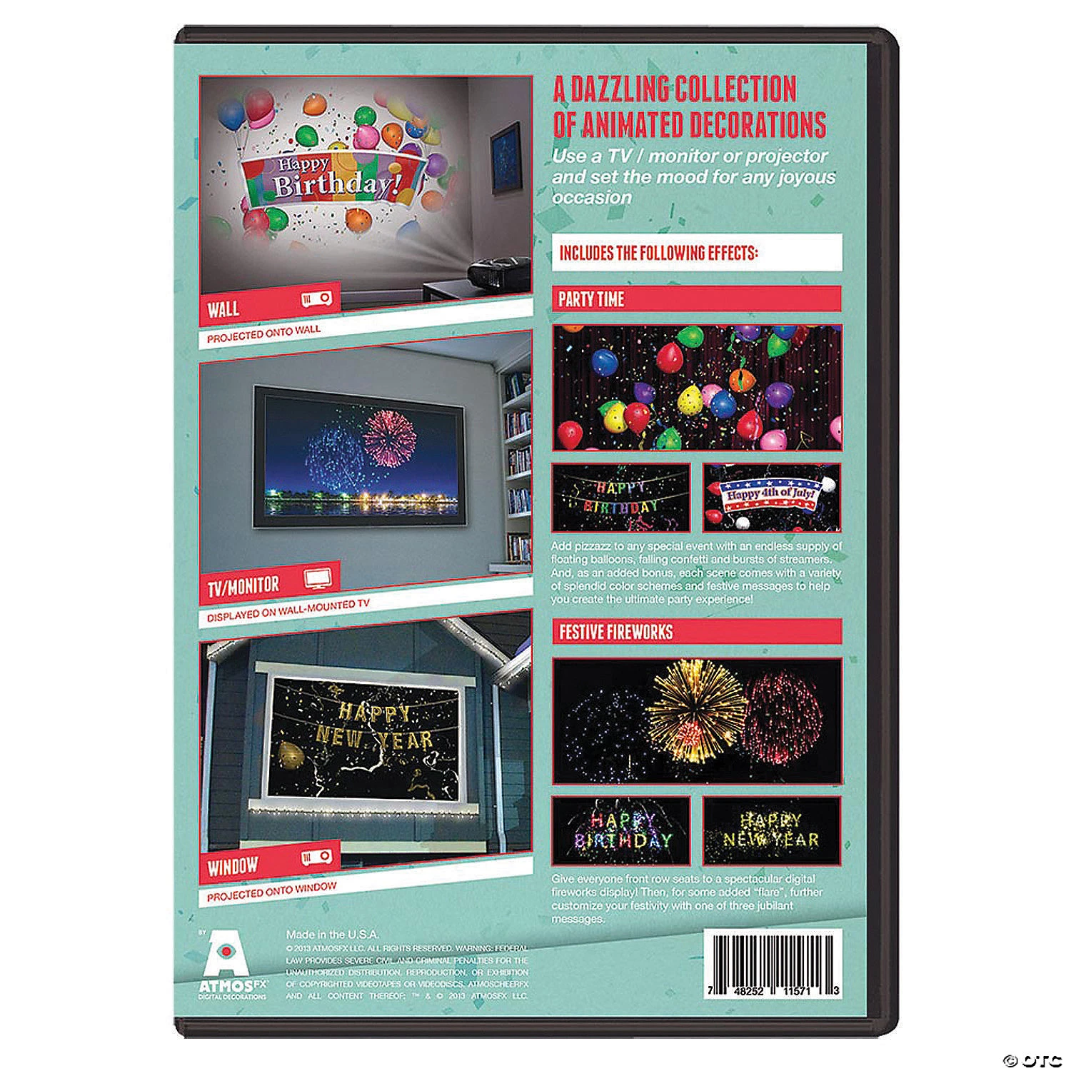 Delightfully Entertaining Digital Decorations! It’s time to PARTY! Lively jazz music, streamers and balloons turn your space into a happening, fun place. It’s perfect background music for Mardi Gras parties and birthday parties. Create a celebration in your home or display with this great DVD that turns your TV or monitor into an animated decoration. Customize experience easily from DVD menu. Celebrations Party Time DVD is recommended for projection on any wall or window, or you can display on your TV or monitor.Special Shipping Information: This item ships separately from other items in your order. Imported.
