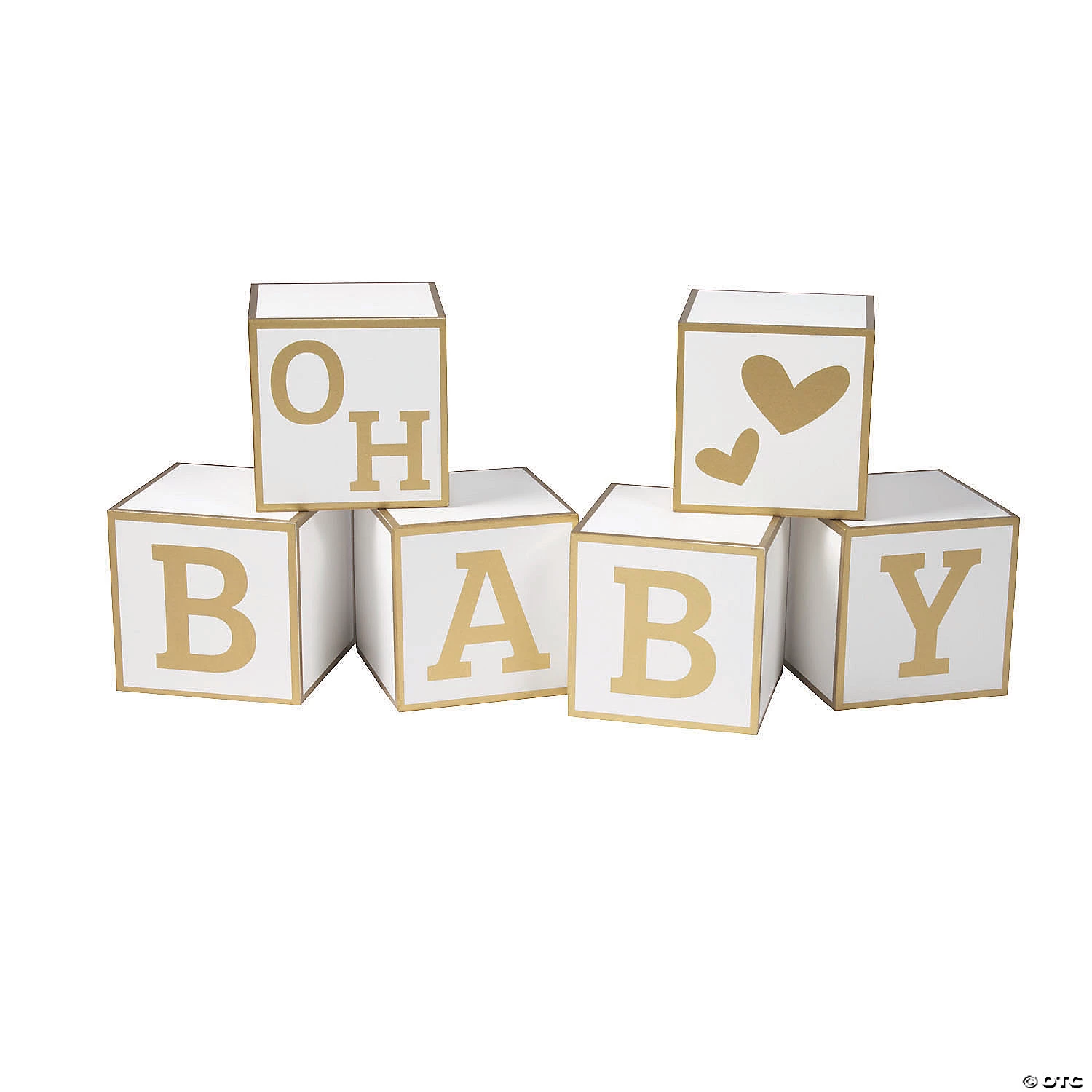 Build the best baby bash ever! A great addition to baby shower décor, these blocks come in a simple yet sophisticated gold and white hue. You’ll love setting this on the buffet or gift table, adding instant style to your soirée! Guests can sign the blocks for a keepsake the mom-to-be will cherish. For coordinating disposable tableware and party supplies, simply shop this site. Wood. (6 pcs. per set) 3 1/2″ © OTC