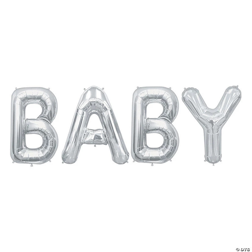 Four simple letters – one big impact! This mylar balloon kit spells out the word, “baby”, making it perfect as a baby shower decoration, backdrop for a baby shower photo booth, or to use in photos for your pregnancy announcement. The silver color of these balloons gives them an elegant look and goes well with winter-themed baby showers or any other chic baby shower theme. (4 pcs. per unit) 34″