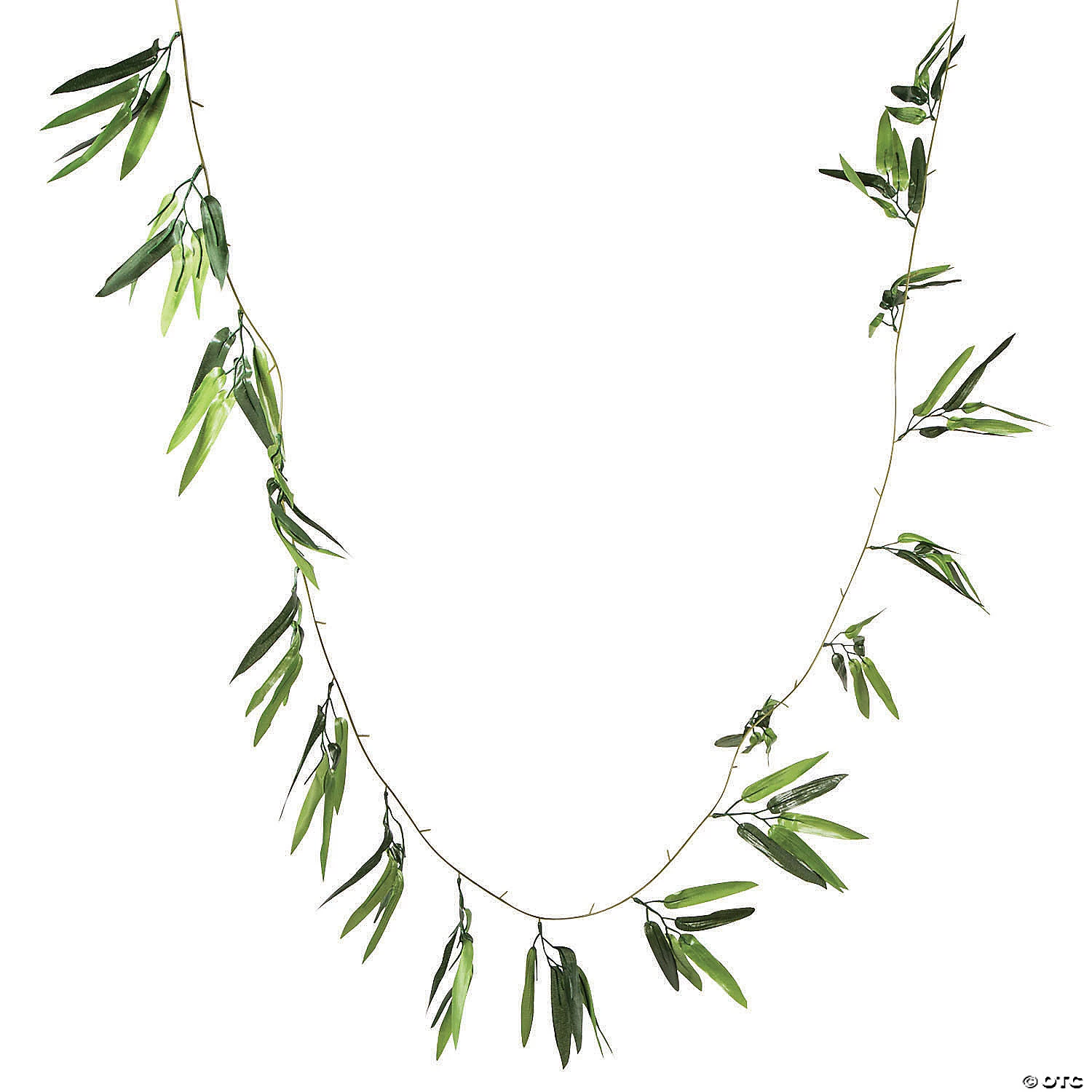Your beach party and luau supplies aren’t complete without this spectacular finishing touch! Featuring realistic leaves, this Bamboo Garland adds a tropical touch to your indoor or outdoor decorations! For a fresh, natural look at your next poolside gathering or Hawaiian party, wrap this garland around any railing. Not every section has foliage. Plastic and polyester. 9 ft.