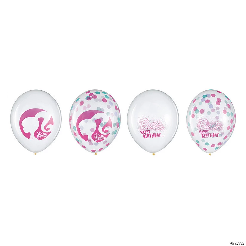 Impress your guests with these fun party supplies! Featuring two assorted designs, these balloons are must-have decorations for a Barbie-themed birthday party. Arrange them into a bouquet with other colorful balloons and balloon weights then use as centerpieces for your cake and party tables. The birthday honoree will be delighted to find that three of the balloons are filled with confetti! Find more Barbie decorations and party supplies on this website. © 2022 Mattel. All Rights Reserved. BARBIE and associated trademarks are owned by and used under license from Mattel.