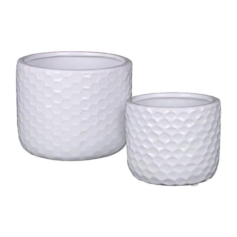 Get creative with beautiful flowers in an array of rich greens by adding this set of 2 round vases to your living space. These are made up of ceramic and has engraved diamond pattern on its body along with smooth curvy bottom that gives it a good stability. These vases bear a glossy white finish that accentuates its beautiful construction. Place it on any desk, side table or any where you want to add a focal point.