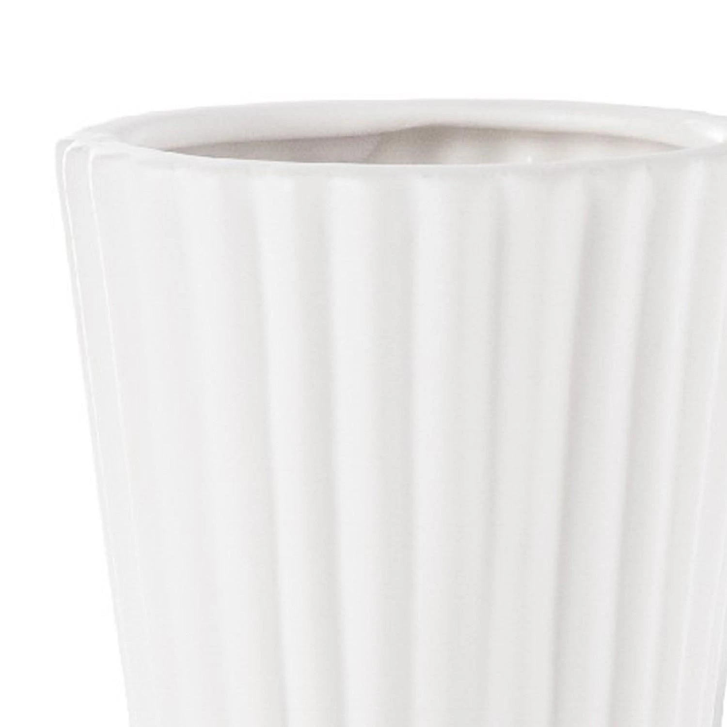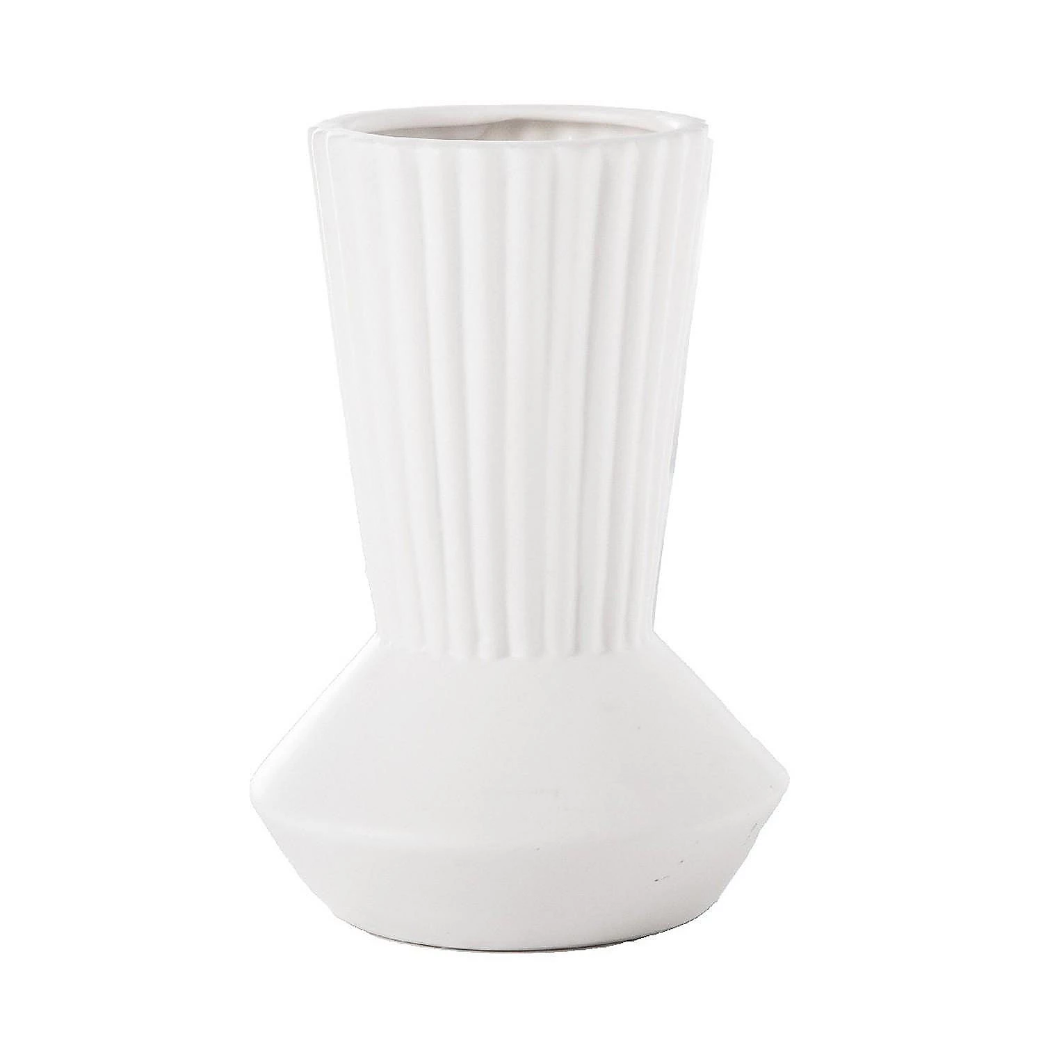 Textured corrugated design meets harmonious matte white finish with this vase from the Kurt collection. Featuring a long neck with trumpet mouth, it is crafted from quality ceramic for lasting durability. With a pedestal style base, this vase makes a riveting addition to your tabletop or mantelpiece.