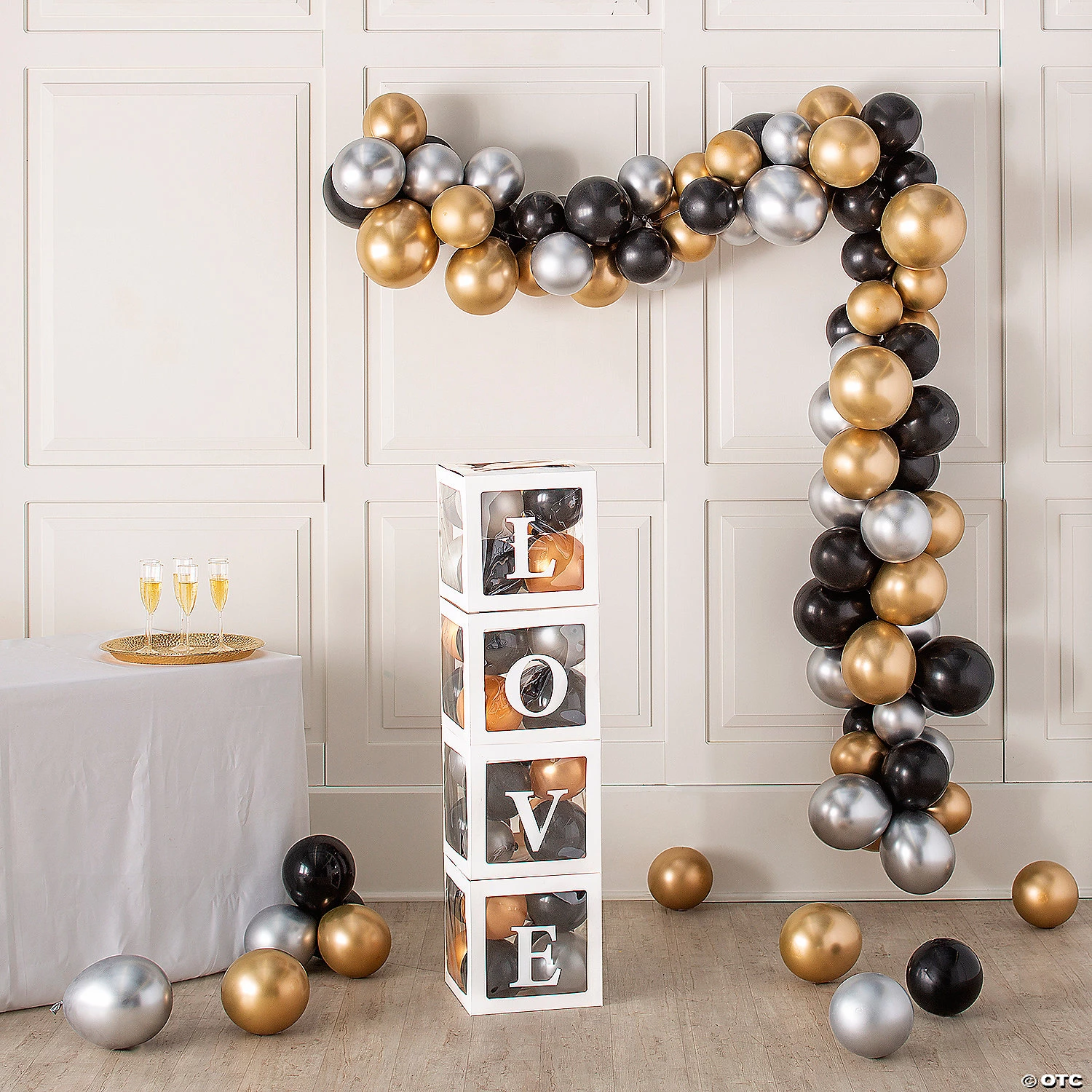 Get everything you need to create a lovely balloon garland for any special occasion! Save your breath and use the handheld air pump to blow up all the balloons. Form the decorating strip into the shape you’re looking for, then weave the knotted ends of the balloons through the holes in the strip. Use the Glue Dots to keep it all together, and voila! You have a beautiful balloon arrangement of your very own design! (147 pcs. per unit)Includes:• Glue Dots® XL: Safe and non-toxic. (60 pcs. per unit) 1″ Conforms to ASTM D-4236.• Balloon Decorating Strip: Plastic. 50 ft.• Handheld Air Pump: Plastic. 11 1/2″• Black, Gold & Silver Latex Balloon Assortment: (144 pcs. per unit). 11″. Assortment may vary.