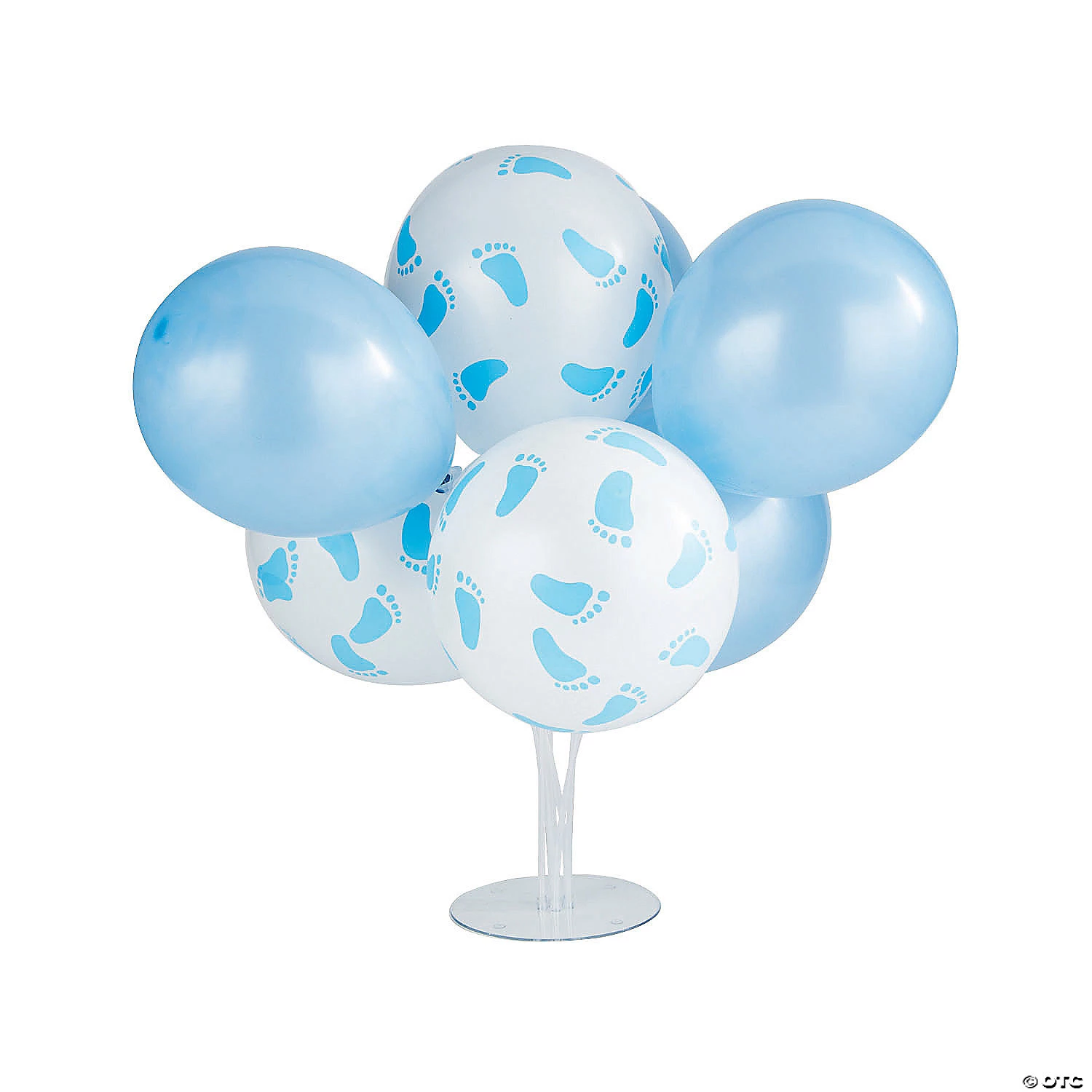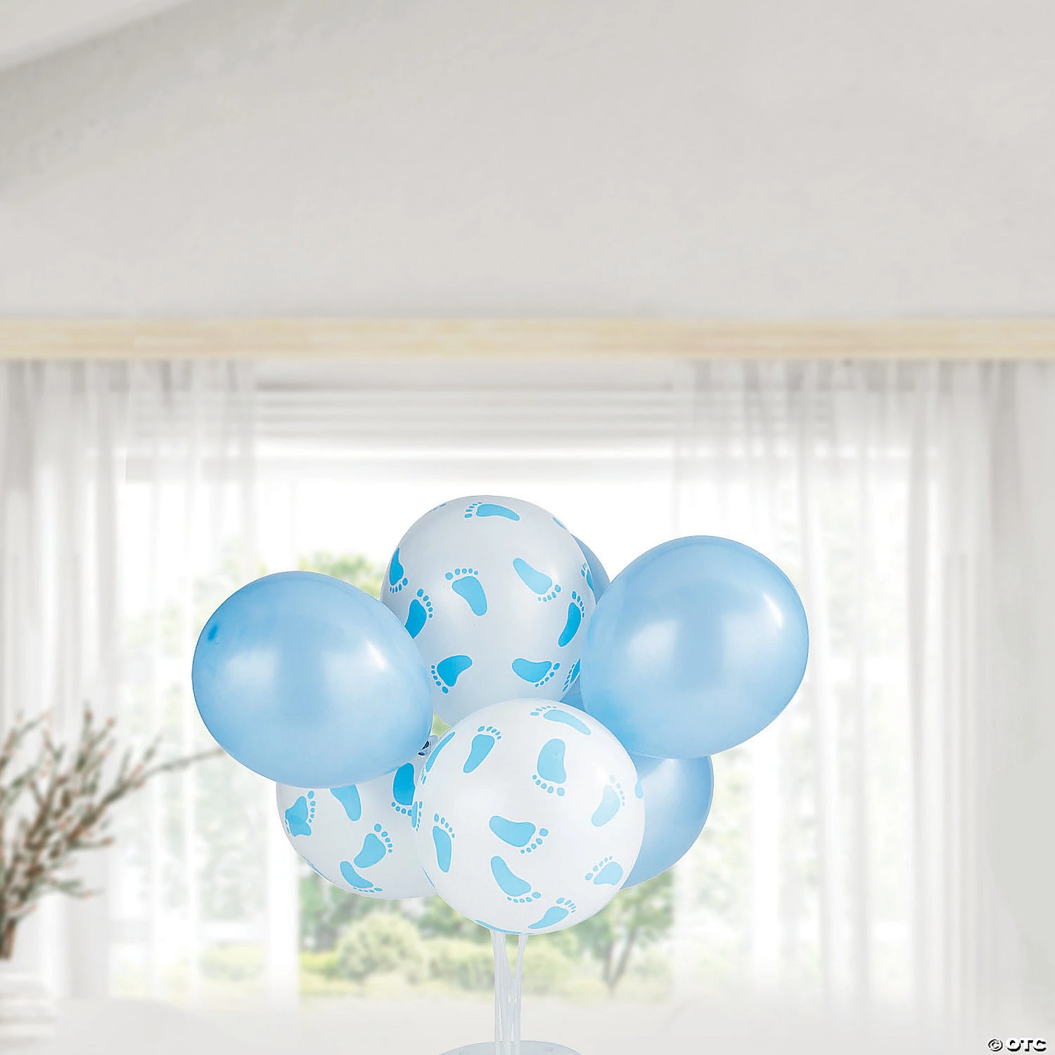 • BUDGET-FRIENDLY DÉCOR: This affordable baby shower décor is a fun way to add festive style and party spirit to your celebration!• QUALITY DECORATIONS: If you’re planning a baby shower, this cute shower decorating kit has you covered. it includes quality latex balloons that can easily be mixed and matched with other balloon options for your ideal color scheme or theme.• EASY TO INFLATE: These balloons are easy to inflate with air and stay pretty and perky for hours.• PARTY SUPERSTORE: We are your one-stop party shop! Come to Oriental Trading for all of your party supply needs, from party decorations to tableware to party favors and more.Product Description:Looking for some cute decorations for a boy baby shower or gender reveal? Our balloon centerpieces are lovely and affordable alternatives to flower centerpieces. This trendy balloon décor kit makes 5 balloon centerpieces to fill your tables with joy. You’ll adore the easy assembly and look of the finished product. Baby shower guest tables have never looked so fun!Quantity: 53 pcs. per kitMaterial: Latex, PlasticIncludes: • 24 Latex Light Blue Balloons (11″)• 5 Plastic Balloon Stick Bouquets (11 sticks, 7 balloon holders and 4 extension pieces. 27″)• 24 Baby Footprints Latex Balloons (11″)Simple assembly required.© OTC