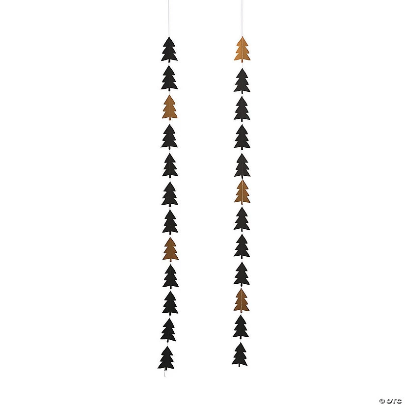 Go bold with your holiday decorations! Instead of the traditional green and red, try this Bold Christmas Hanging Décor, which mixes matte black and shiny gold in a pretty, chic way. Hang these little tree decorations from the ceiling, around the doorway or along a wall as a photo backdrop. Cardstock. 2 1/2″ cutouts, hangs approx. 5 ft. © OTC
