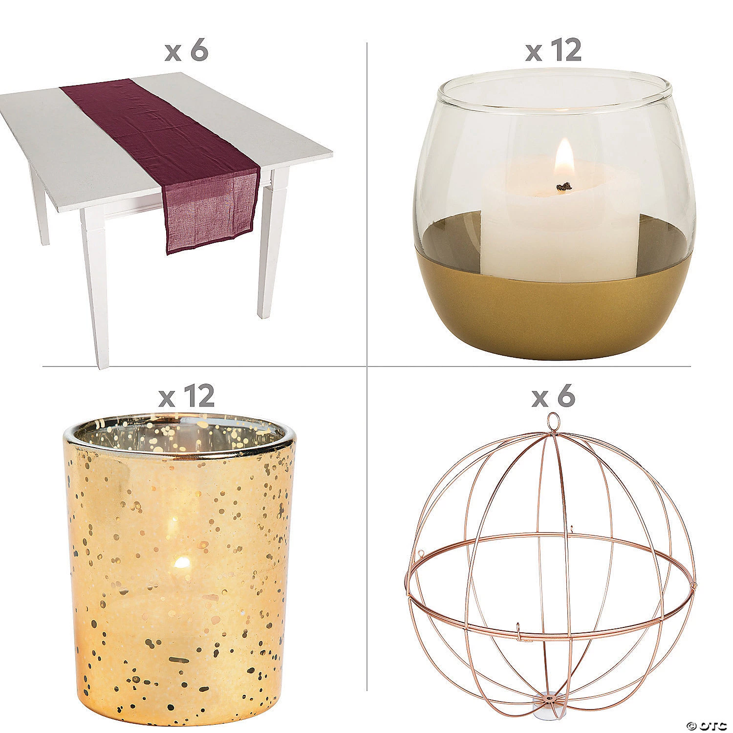 Decorating event tables with a stylish centerpiece is easily managed with this well-designed centerpiece kit. This elegant kit includes a perfect selection of items to dress up the center of tables for a wedding reception, holiday party, corporate event and more. (36 pcs./unit)