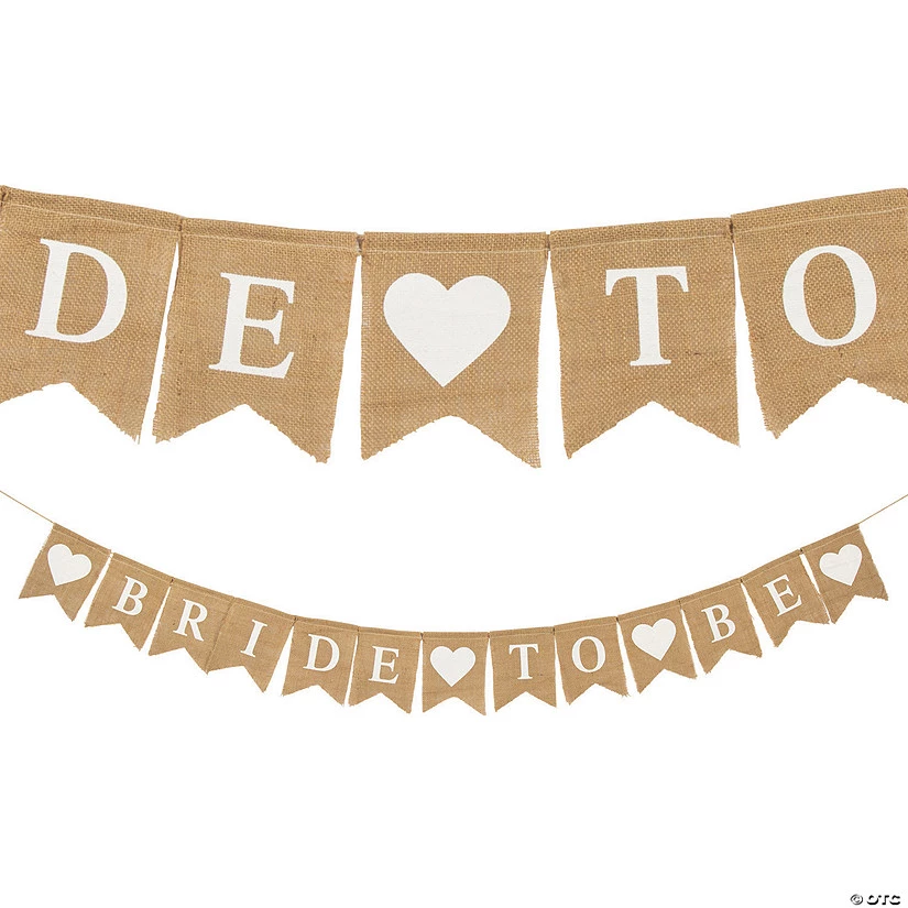 Celebrate the bride to be! This burlap banner is a perfect wall decoration for a rustic bridal shower or bachelorette party. The bride will appreciate the effort put into decorations in her bridal suite and might insist on a group photo in front of the banner. Check out all the other fun bride to be decorations and bridal shower party supplies available on this website. Burlap. 9 ft. garland with thirteen 5″ x 6 3/4″ pennants.
