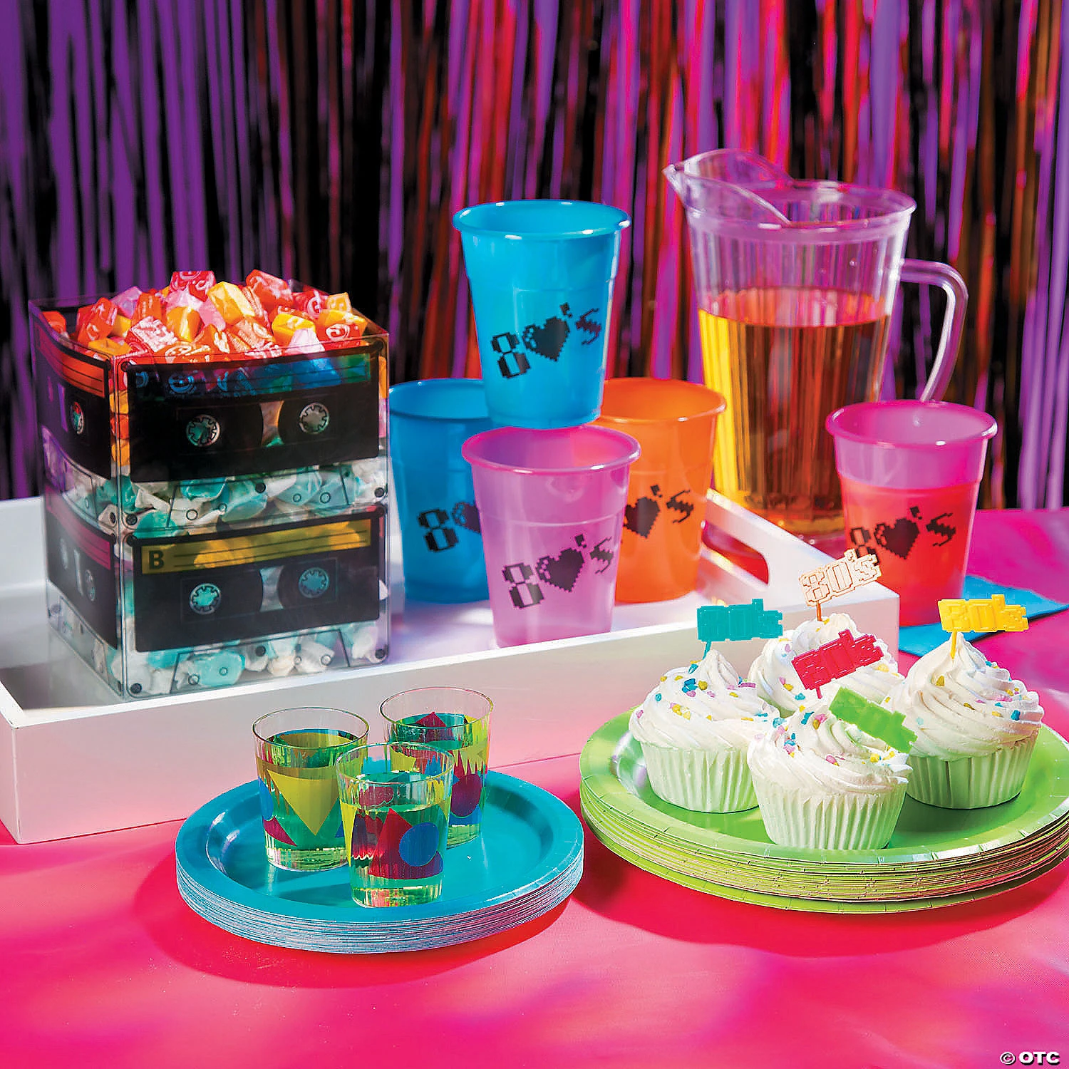 Class it up at your classic 80s party with these centerpiece buckets! With a rad cassette tape theme, they’re fun DIY decorations. Fill them with mix tapes you can use as party favors, neon bracelets, cool sunglasses and more. They’re guaranteed to brighten up your pop culture party! Plastic. (6 pcs. per unit) 3 small buckets, 4″ x 5″; 3 large buckets, 5 1/2″ x 7″. Simple assembly required. © OTC