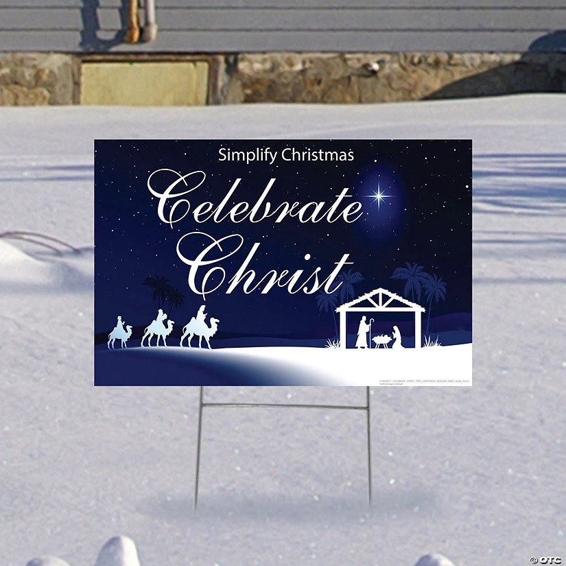 Help spread Christmas cheer for the real reason for the holiday season with this religious Christmas yard sign. Let the community know that your household serves the Lord and celebrates Christ’s birthday! This eye-catching yard sign makes a powerful statement of faith, even when joined by other outdoor Christmas decorations. Single-sided. Corrugated plastic. 23″ x 15″ Includes metal stakes. Simple assembly required.