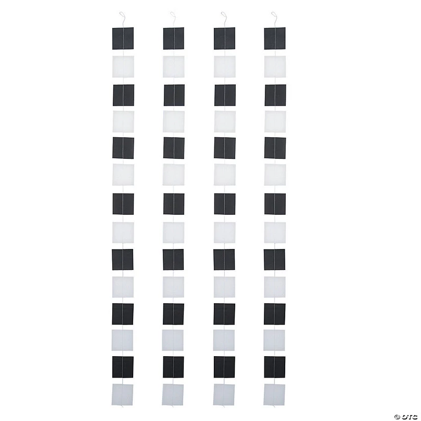 Add a stately touch of black and white to any space when you hang these four strands of squares. They’re perfect over-the-hill birthday or New Year’s Eve decorations, or use them as bedroom décor in a teen’s room. Add them to wedding reception of classroom supplies for a chic and simple hanging decoration. Just as black and white pair well with anything, these checkered squares look good for any event or occasion. The possibilities are endless! Paper. (4 pcs. per set) 4″ x 62 1/2″ © OTC