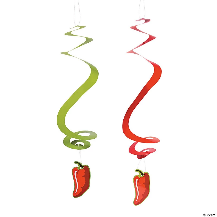 Ready to add a kick to your fiesta party decorations? These festive Chili Pepper Swirls will liven any event, large or small! Great for adding a spicy touch to cookouts, potlucks and backyard parties. Don’t forget about your Cinco de Mayo celebration! Hang these swirls from your ceiling to set the mood for a Mexican celebration! Paper. Hangs approx. 30″ © OTC