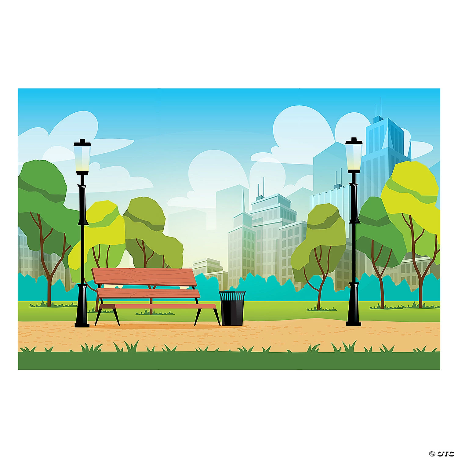 Instantly create a city park scene where no park exists with this colorful backdrop. Great for photo booths, party decorations or as a scene backdrop for a show set in a city park, this wall decoration is an easy way to create the look of a city park without bringing in a bunch of park benches and trees to set the scene! Plastic. (3 pcs. per set) Assembled, 9 ft. x 6 ft. Simple assembly required. © OTC