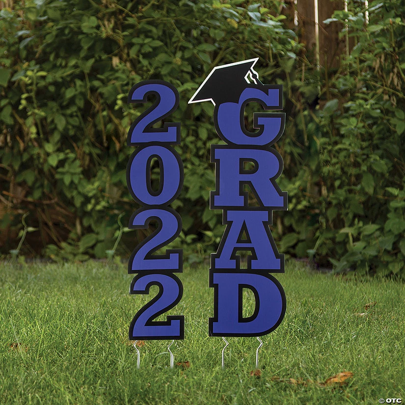 Show off your pride in your 2022 graduate with these eye-catching yard stakes. These outdoor graduation decorations for 2022 help let the community know that there’s an accomplished graduate living in your home! Celebrate the grad with these 2022 Grad yard stakes featuring bold letters and a graduation cap image. Corrugated plastic. (2 pcs. per set) 6 1/4″ – 11″ x 28″ – 30″ Includes metal stakes. Single-sided. Simple assembly required. © OTCPurple Class of 2022 Yard Stake Instructions