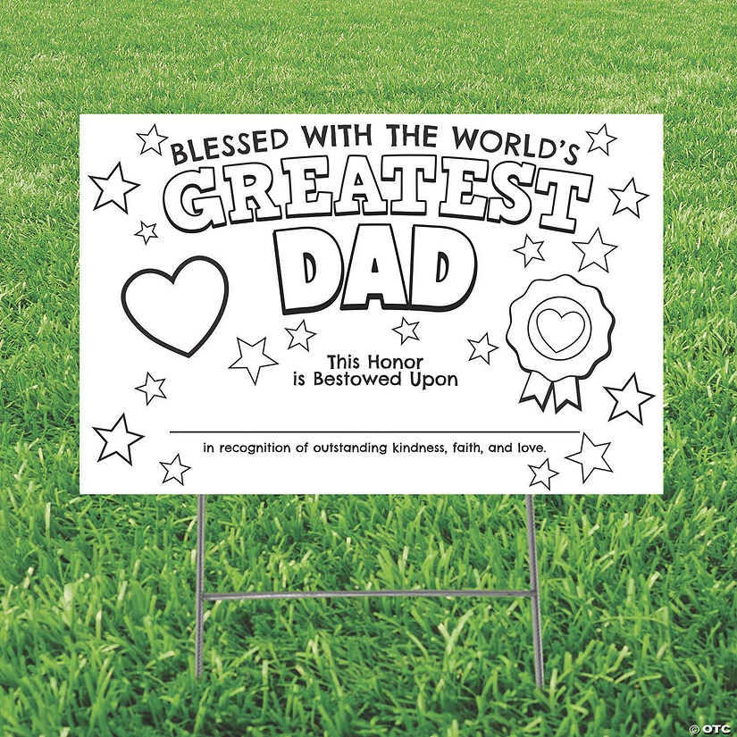 Show the world how blessed you are to have amazing dads, whether it’s your father, grandfather, stepfather or the father of children in your life. An ideal Father’s Day gift, you can have kids color this sign and then place it in Dad’s front yard as a heartwarming Father’s Day surprise. Plastic. 23″ x 15″ Permanent markers recommended, sold separately. Includes metal stakes. Simple assembly required. © OTC