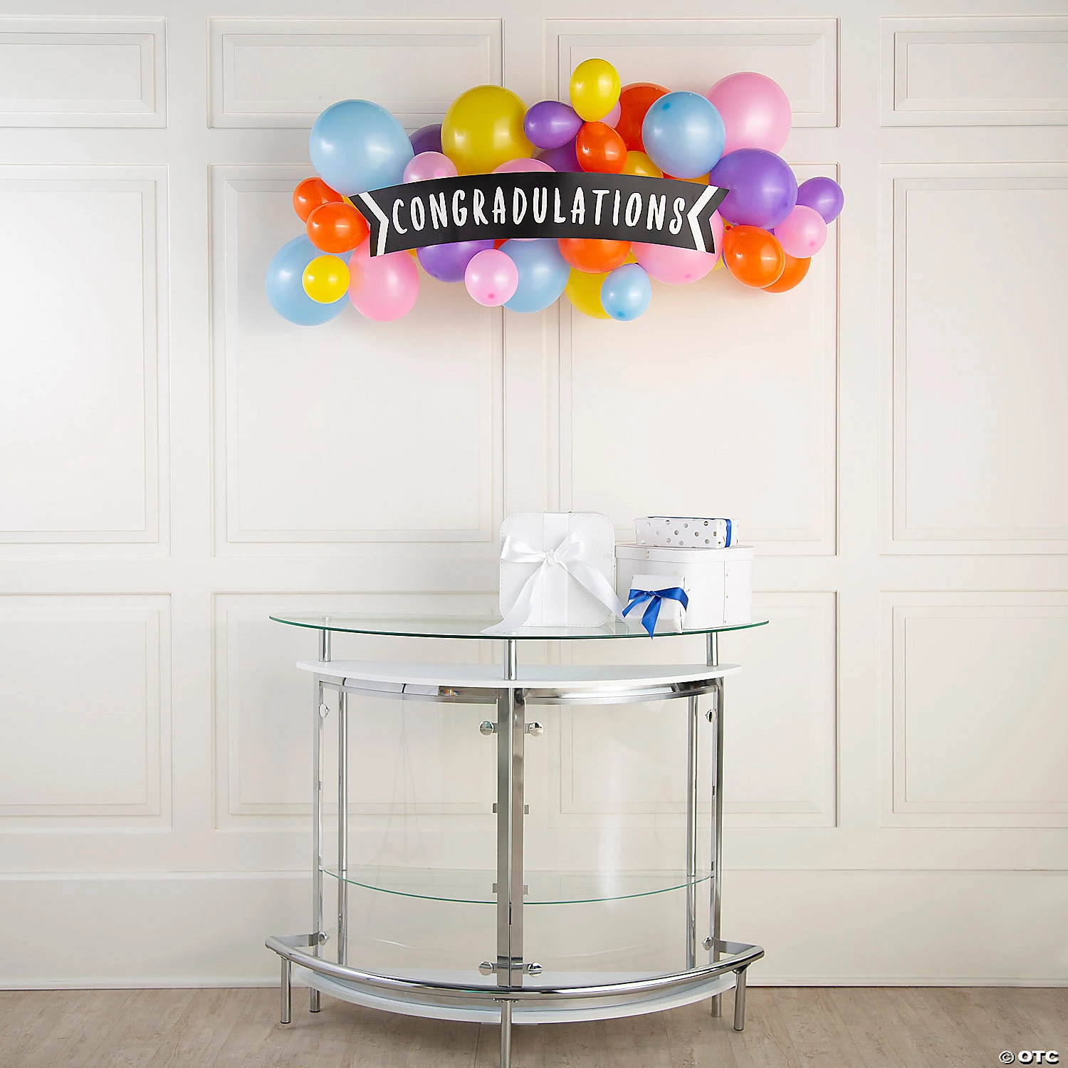 Celebrate your favorite girl – or anyone who loves a variety of colorful balloons – with this eye-catching balloon garland decoration. The center of the garland has a “congratulations” message and is surrounded by colorful balloons. This show stopping graduation party wall decoration also works for any other celebration of an accomplishment. Latex. (44 pcs. per unit) Assembly required. Assortment may vary. © OTC