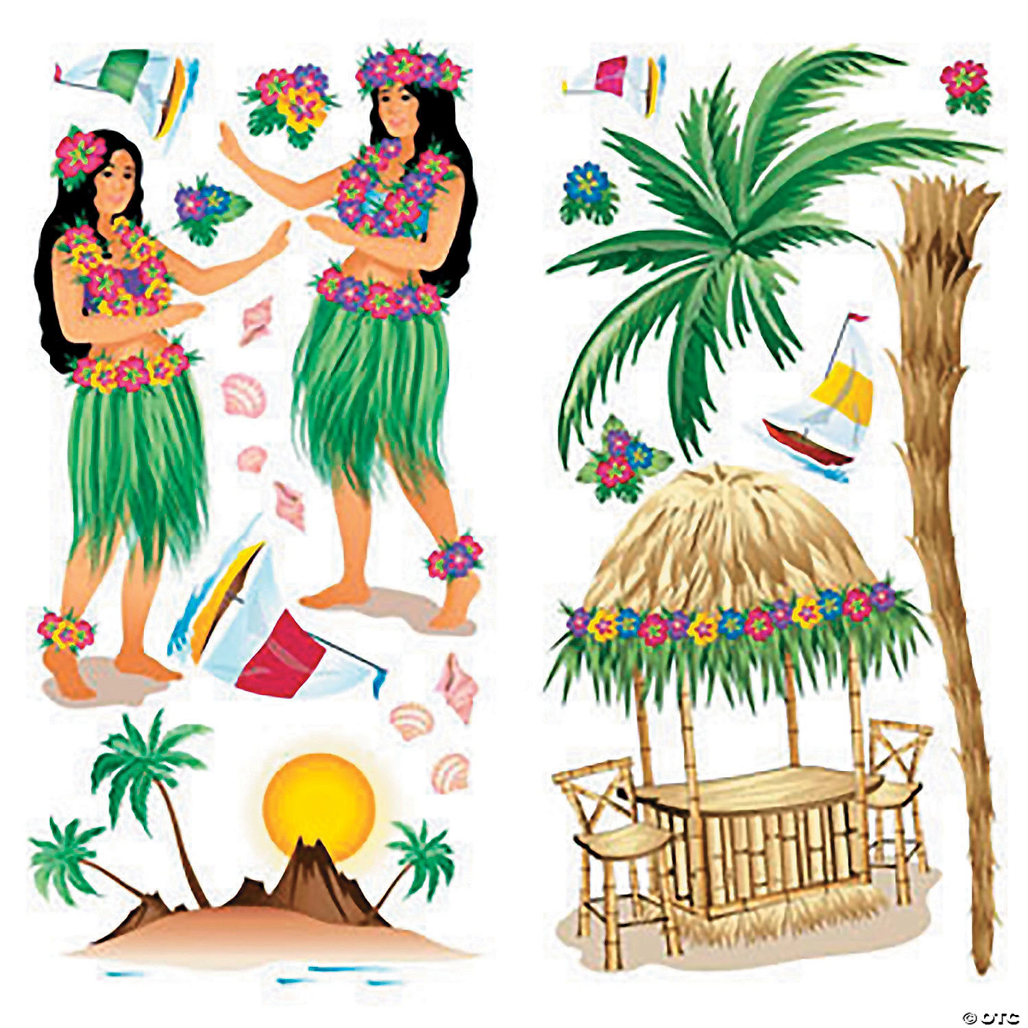 Design-A-Room Hula Girls Set. These vinyl luau decorations help set the scene for a fun beach party! Use our āDesign-A-Room Hula Girls Setā to add a fun Hawaiian theme to your room in just minutes! Itās an easy way to decorate for an indoor luau! Includes 21 pcs. on two 3-ft. x 6-ft. sheets. Individual decorations must be cut out with scissors. Use your own wall adhesive for hanging. Ā© OTC