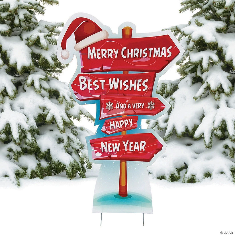 This way to Christmas fun! Direct holiday party guests toward the Christmas cheer with this adorable outdoor yard decoration. A fun addition to Christmas yard art, this Directional Holiday Yard Stake will take charge of the fun on your front lawn this Christmas season. Shop our entire collection of Christmas yard stakes for an easy way to deck your yard this season. Corrugated Plastic. 45″ x 65″ with metal stakes. Simple assembly required. © OTC