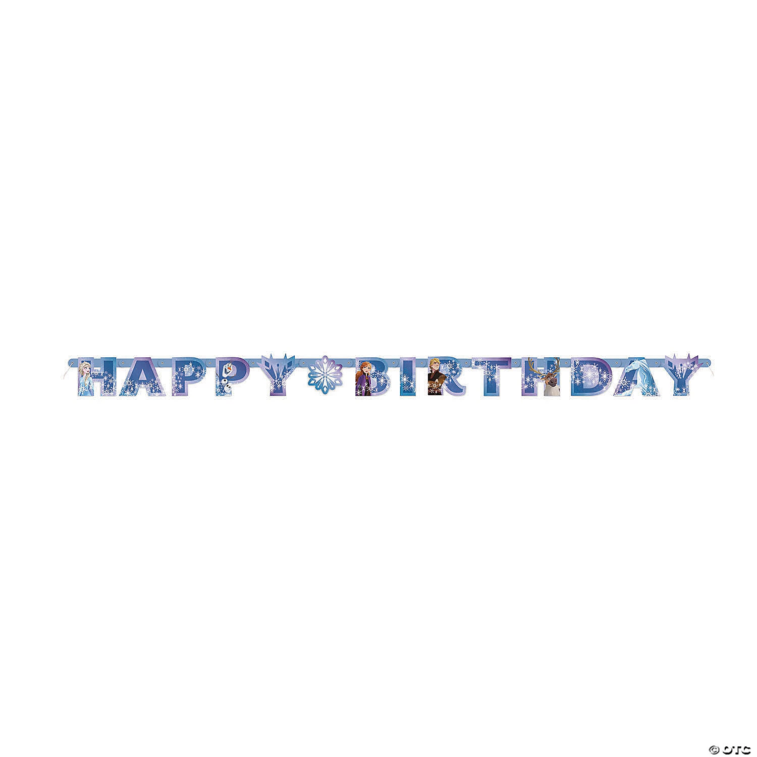 Wish your little princess a happy birthday Frozen-style! This Frozen 2 party decoration features Anna, Elsa, Kristoff, Sven and Olaf — and plenty of snowflakes! Add this birthday banner to your Frozen party supplies and check out more winter princess essentials on our website. Paper. 6 ft. © Disney