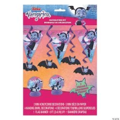 Turn your party space into Vampirina’s castle with the help of this birthday party decoration kit! With both tabletop decorations and hanging decorations, this all-in-one kit has everything you need rolled into one. Pair the Vampirina decorations with matching tableware and party favors found right here on our website! Plastic. (7 pcs. per unit) © Disney