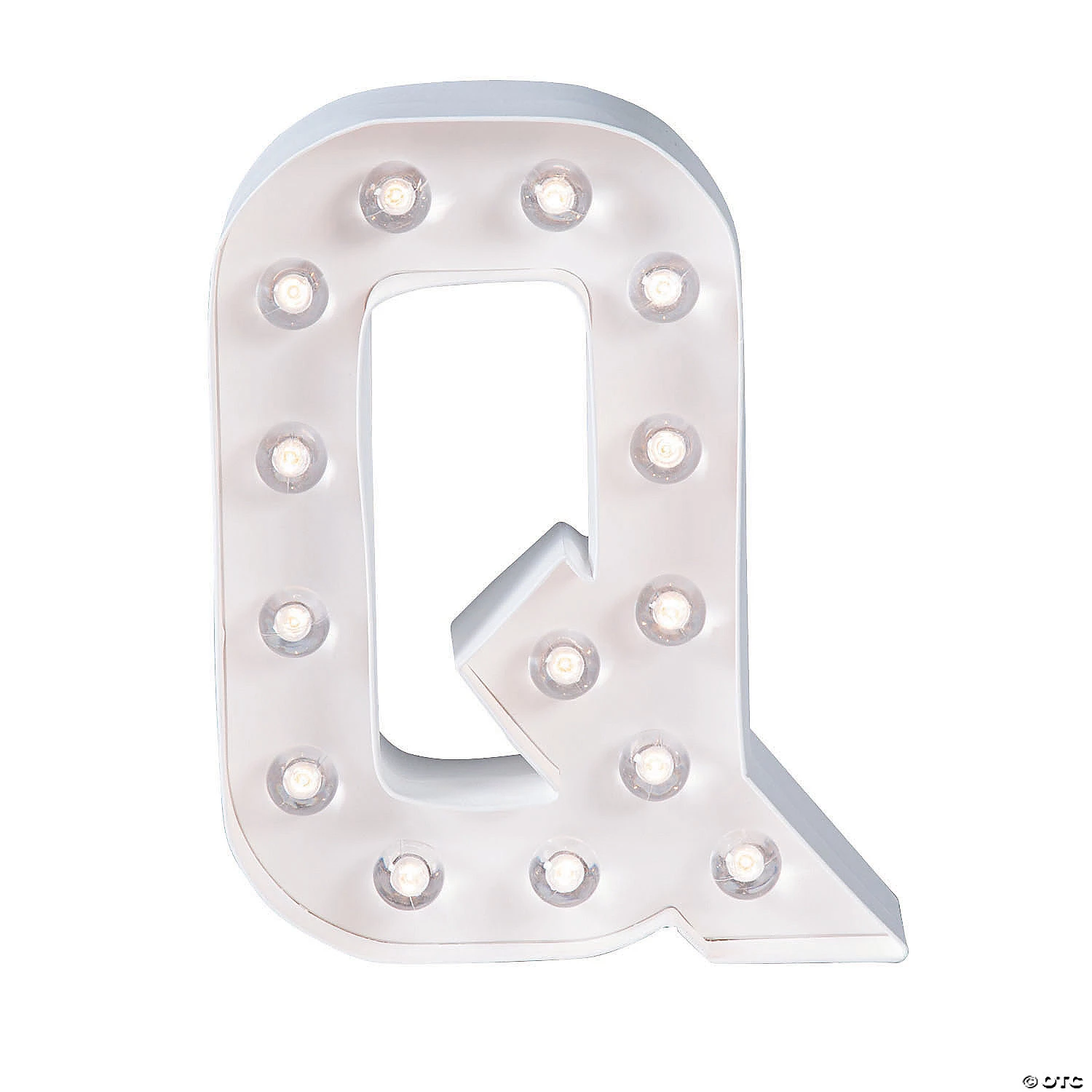 Get quite the amazing home décor piece with this “Q” Marquee Light-Up Kit! Decorate the letter with your own paint, washi tape, scrapbook paper, glitter or any other embellishments to fit your own personal style. Use it to spell out your name or a meaningful word and place your finished work on the fireplace mantel. Includes the DIY letter, light stand, clear bulbs and tracing template. Cardboard. (4 pcs. per set) 8 1/2″ Requires 2 “AAA” batteries, not included. Bulbs not replaceable. Instructions included. Simple assembly required.