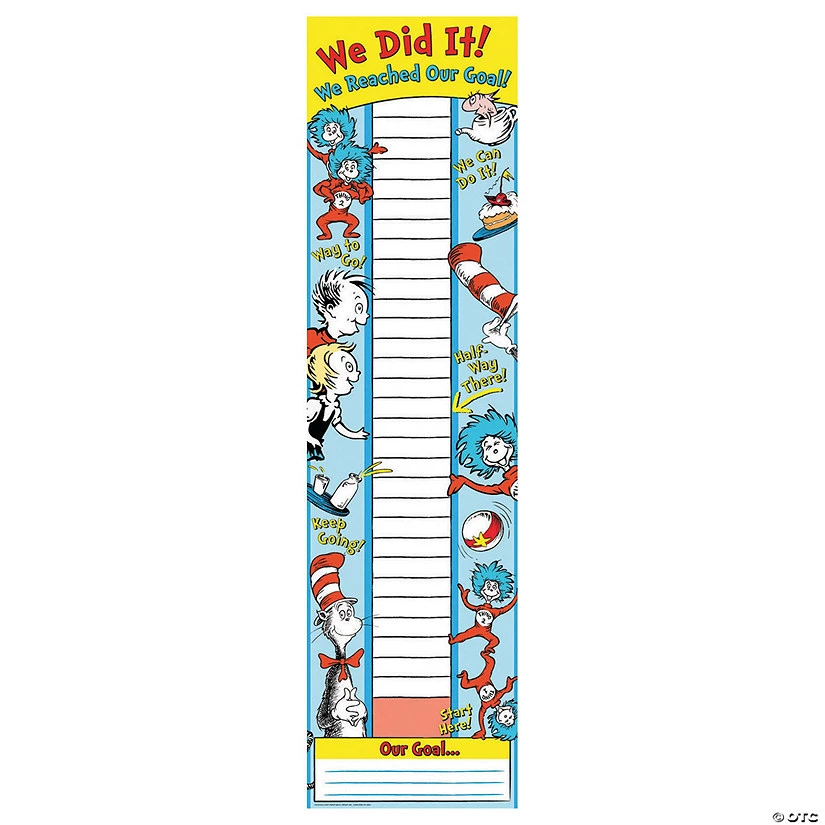 It’s about time you switched up your classroom decorations! Use this banner to achieve a classroom goal. Whether it’s a reading goal, a writing goal or a behavior goal, kids will love to interact with this colorful banner and watch their progress grow as a team. Paper. 4 ft. ™ & © Dr. Seuss Enterprises, L.P. All Rights Reserved.