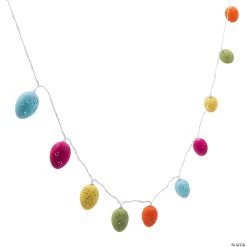Light up your Easter celebration with this cute set of Easter egg lights! Featuring an assortment of fun spring colors and little flower cutouts, these lights would look great hung across a window, mantel, buffet or party table. Add this string of lights to your Easter and spring home décor! Plastic. 5 ft. Requires 2 “AA” batteries not included.