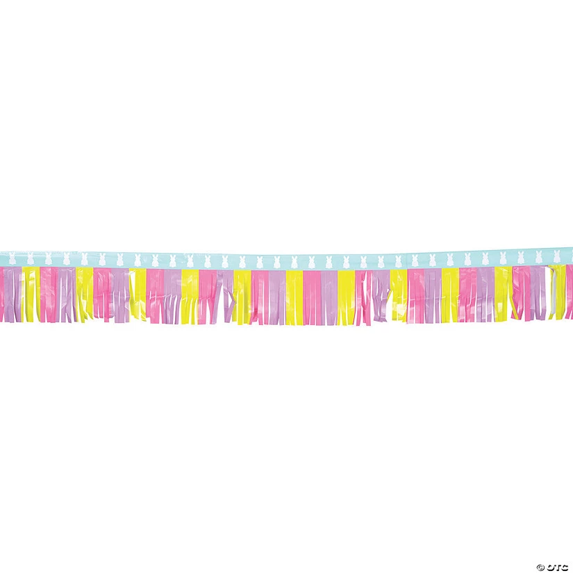 Nothing says Easter like pastel colors and bunnies! For your Easter party, hang this colorful banner as a decoration to highlight the food and dessert display or any other focal point. The banner features pastel fringe and a light blue band with white bunnies, so it will coordinate well with your other Easter party supplies! Plastic. 100 ft. x 8 1/2″ © OTC