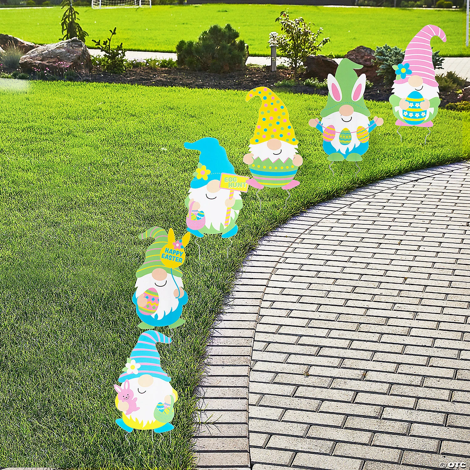 Who says bunnies get to have all the fun on Easter? Add some silly Easter cheer to your front yard with the help of these colorful gnomes! Each sign is a smiling gnome with pastel colors and an Easter image and are perfect as Easter egg hunt decorations or outdoor home decor. These smiling gnomes will get everyone into the Easter spirit! Single-sided. Includes metal stakes. Corrugated plastic. (6 pcs. per unit) 6 1/4″ – 8 1/2″ x 11 3/4″ Simple assembly required. © OTC