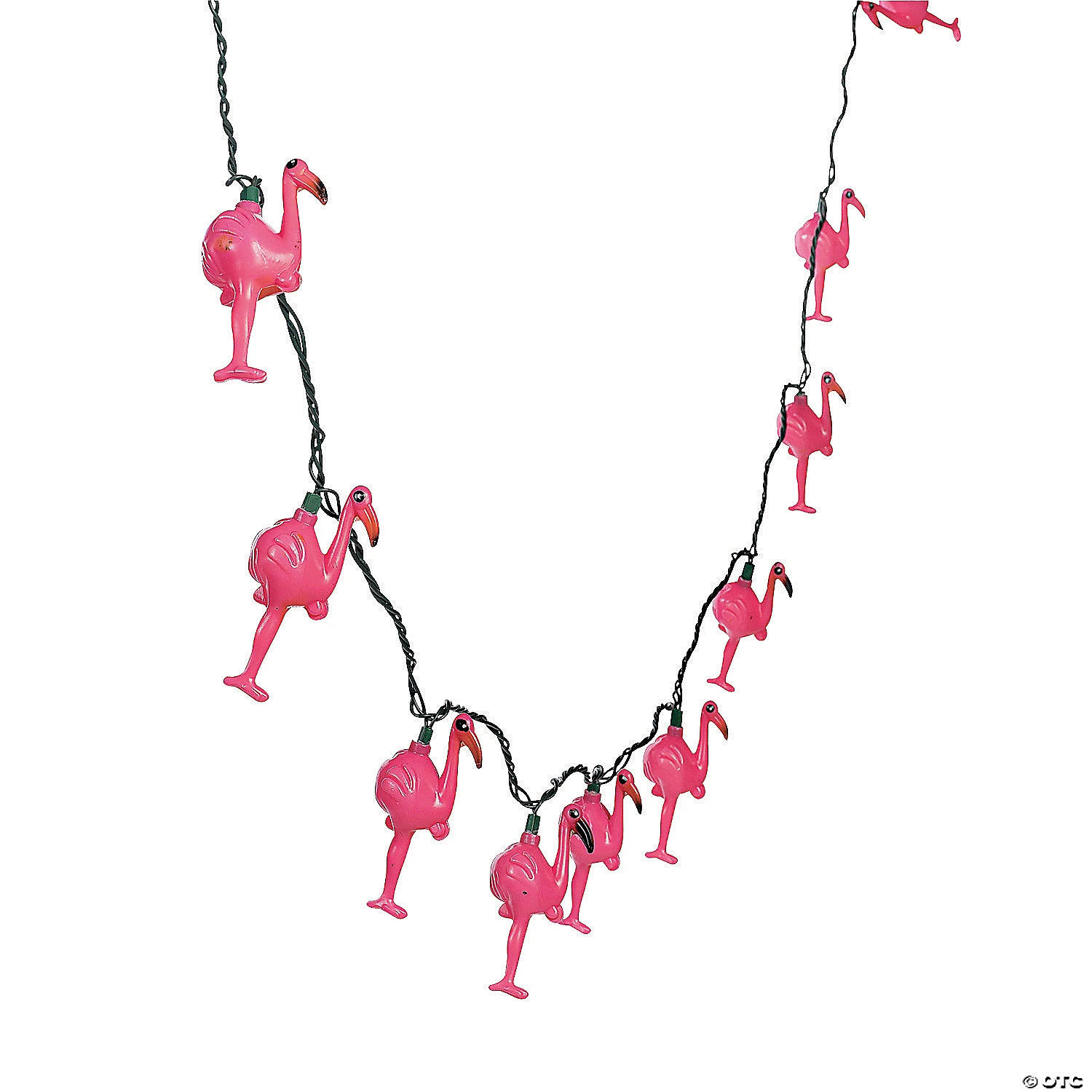 Light up your luau with these truly tropical lights! Featuring the classic pink bird, this glowing string of lights will add an illuminating touch to your indoor beach party decorations. Also fun for adding a splash of color to a bedroom! Includes ten 4 1/2″ plastic flamingo lights. 8 ft. Light sets interconnect. UL listed. For indoor use only. © OTC