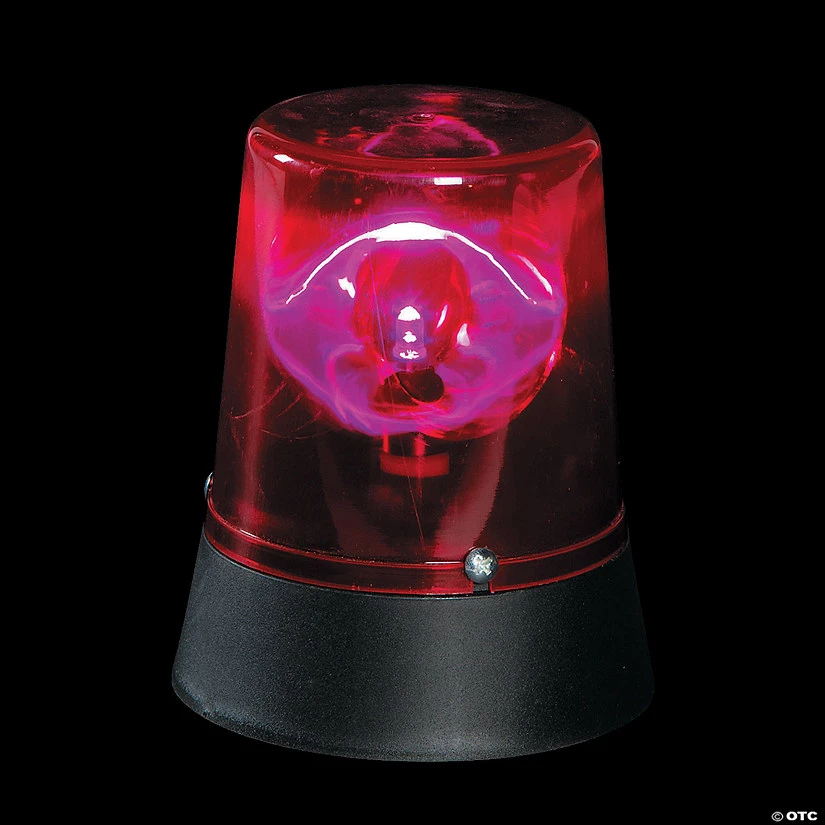 Flashing Mini Red Beacon Light. Having a party lighting emergency? This rotating red light adds flash to any room! Each 4 1/4″ plastic lamp includes an on/off switch. Requires 3 “AA” batteries or AC/DC adaptor, not included.
