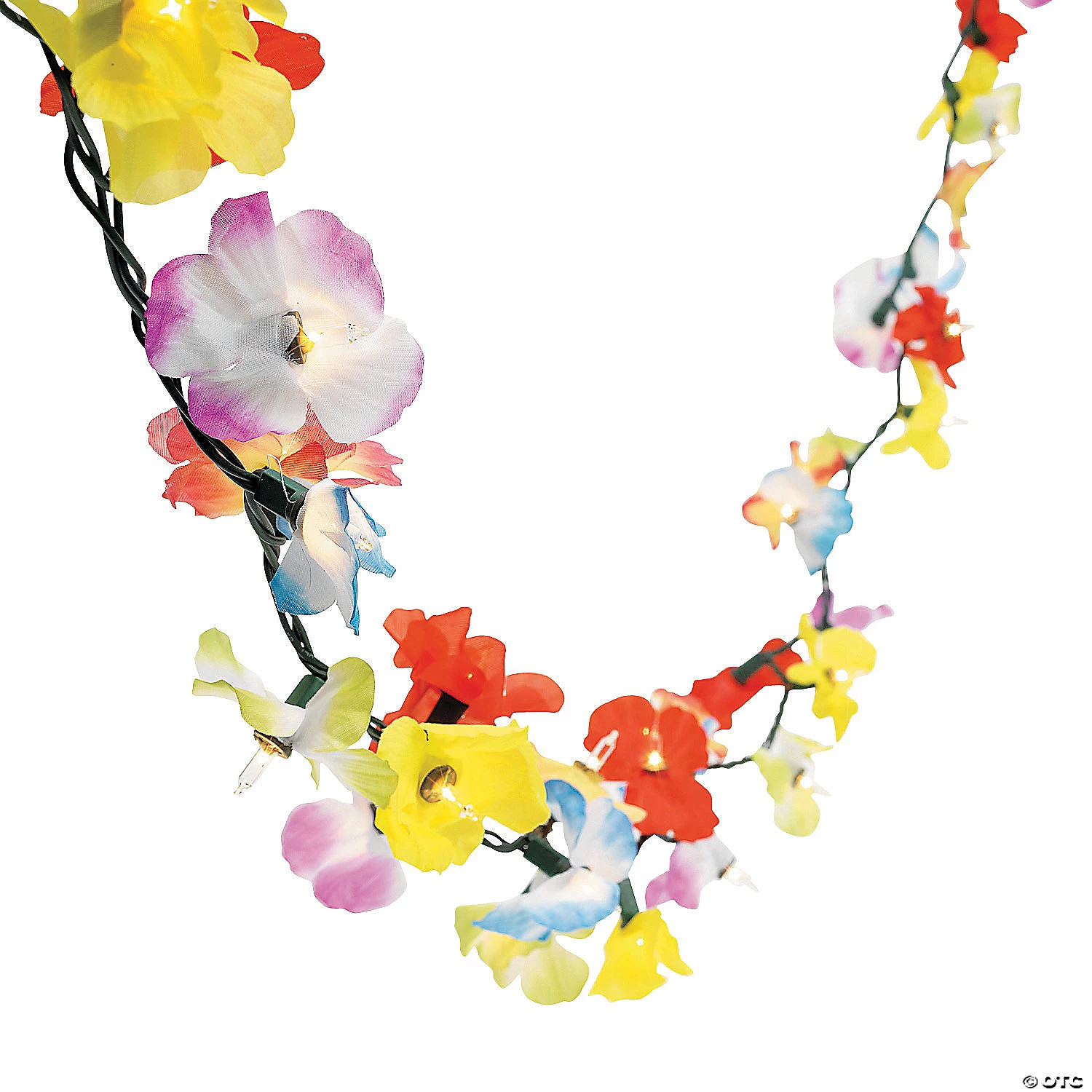 This floral garland is a great luau decorating idea! Hang these string lights around the Hawaiian party’s entrance, from cabanas, fences or porches. This polyester floral garland lights up with 50 assorted 2 1/2″ lights. Each tropical garland will add an island feel to your décor. 11.5 ft. 6″ Light sets interconnect. UL listed. For indoor and outdoor use.