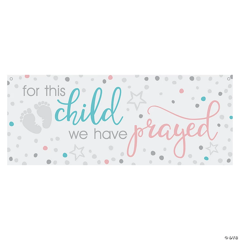 Celebrate the miracle of a baby as answers to prayers with this touching banner. Perfect as baby shower decorations or to hang up when loved ones come visit the newborn, this banner tells the story of a baby that is very much loved and wanted. Great for religious baby showers or baby showers taking place at a church, this banner stirs up happy emotions. Plastic. 50″ x 20″ Includes metal grommets for hanging. © OTC